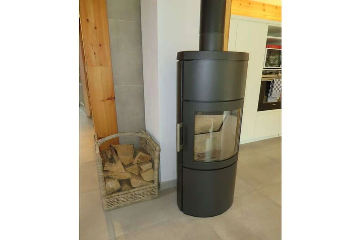 - 1 gemütlicher Wohnbereich mit Sofa, Flachbild-TV, BD-Player und Stereo-Anlage sowie ein schöner Kamin für Brennholz