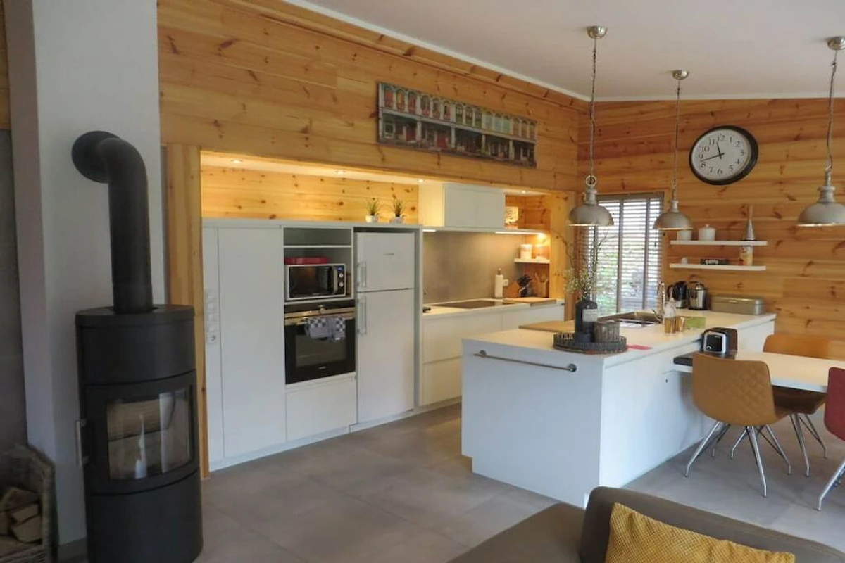 Parterre: (Eingangshalle(, , Heizung), Wohnzimmer(, TV, Kaminofen, Blu-ray-Player, Stereoanlage, Heizung), Küche(, , , , Esstisch, Kochplatte, Wasserkocher, Toaster, Kaffeemaschine, Backofen, Mikrowelle, Spülmaschine, Kühlschrank, Tiefkühlschrank, Heizung, Küchenmaschine), Schlafzimmer(, , Doppelbett, TV, Heizung), Badezimmer(, , Toilette, Dusche, Dusche, Waschbecken, Heizung, Föhn), Heizung(, Trockner, Waschmaschine, Bügelbrett, Bügeleisen, Trockenschrank))