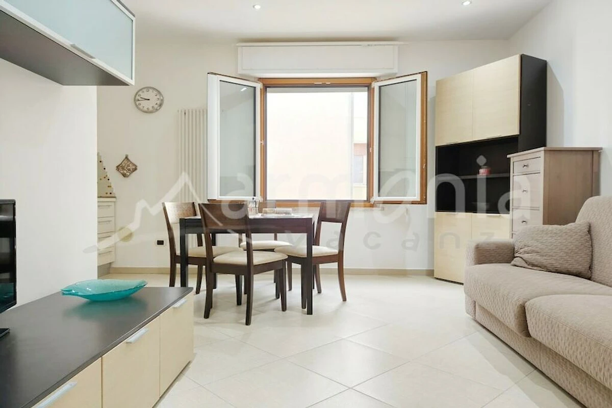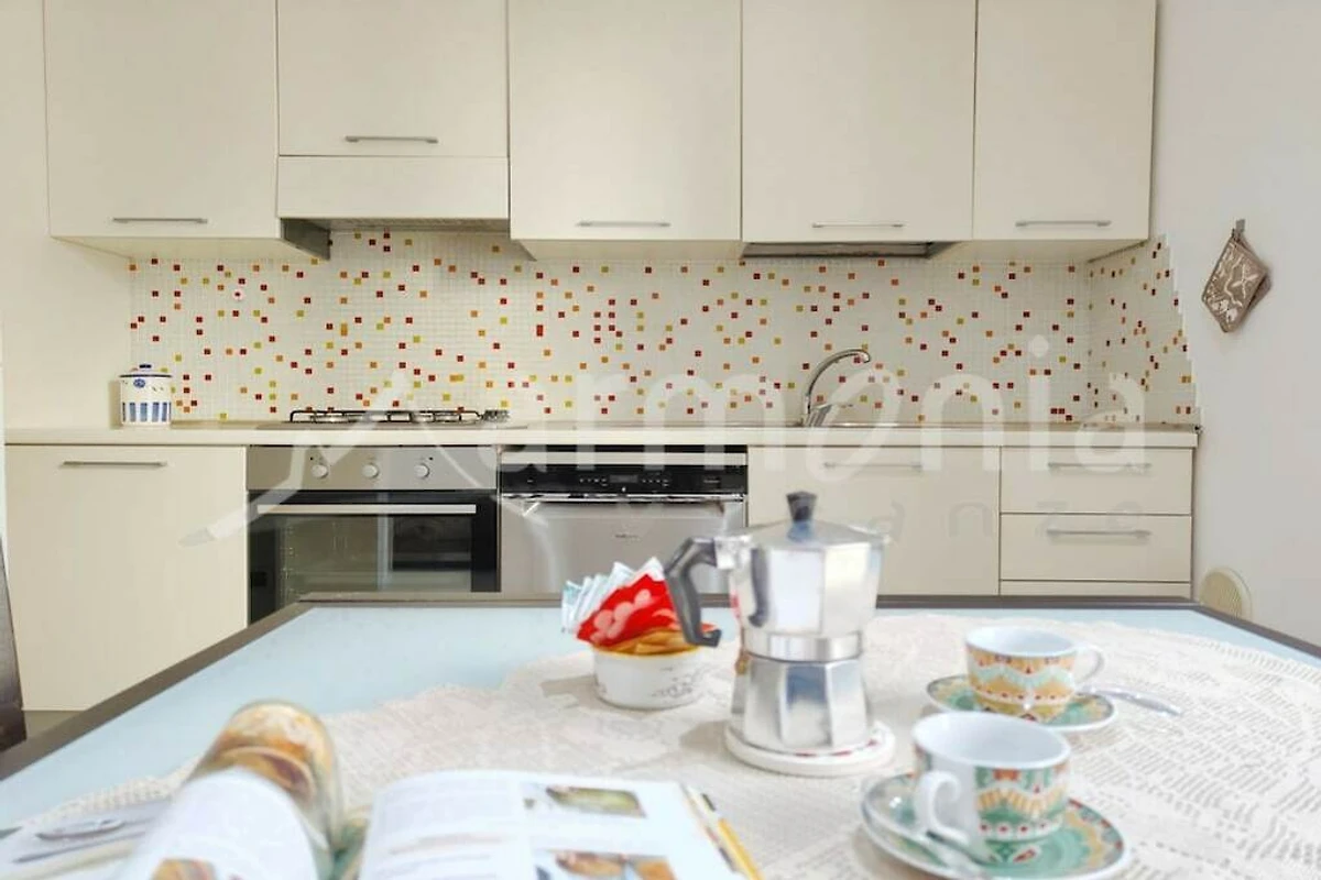 Wohnung im zweiten Stock (ohne Aufzug, aber mit Treppenlift) eines kürzlich renovierten Gebäudes, das sich in einem gepflegten Viertel befindet, in der Nähe des Zentrums von Giulianova Lido und nur 250 m vom Meer entfernt.