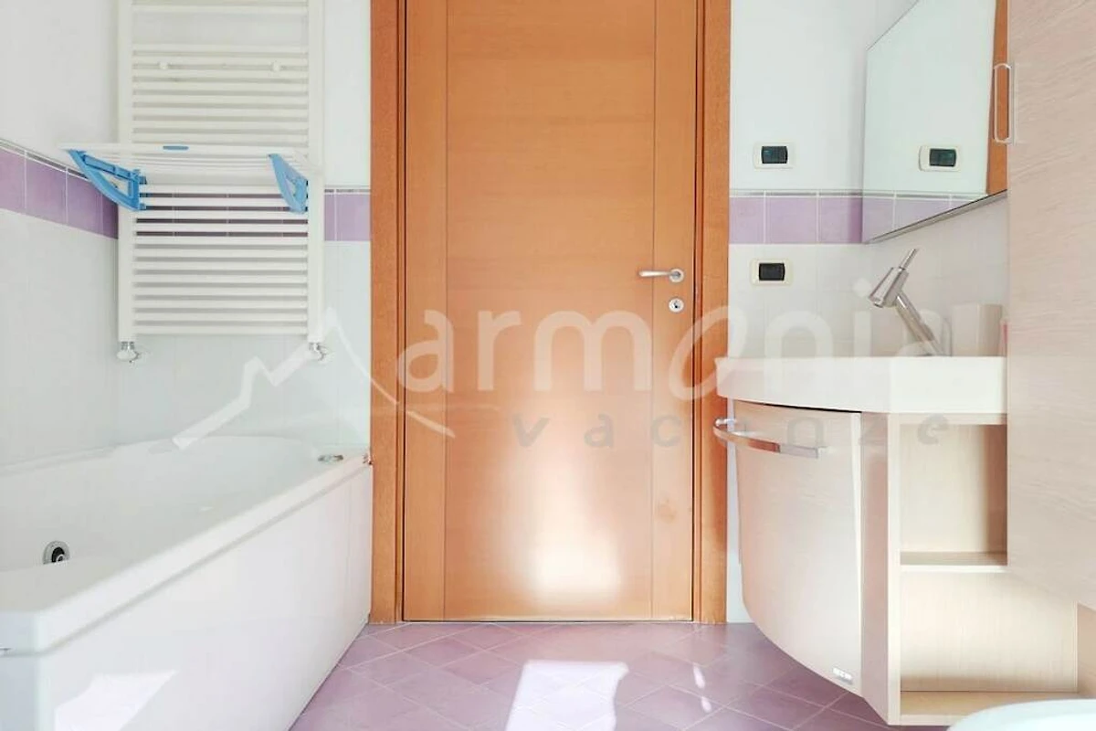 Der Schlafbereich besteht aus einem Schlafzimmer mit Doppelbett, einem Schlafzimmer mit ausziehbarem Brückenbett, einem Badezimmer mit Dusche (für die Wäsche), einem Badezimmer mit Whirlpool und Zugang zu einem kleinen Balkon mit Markise.