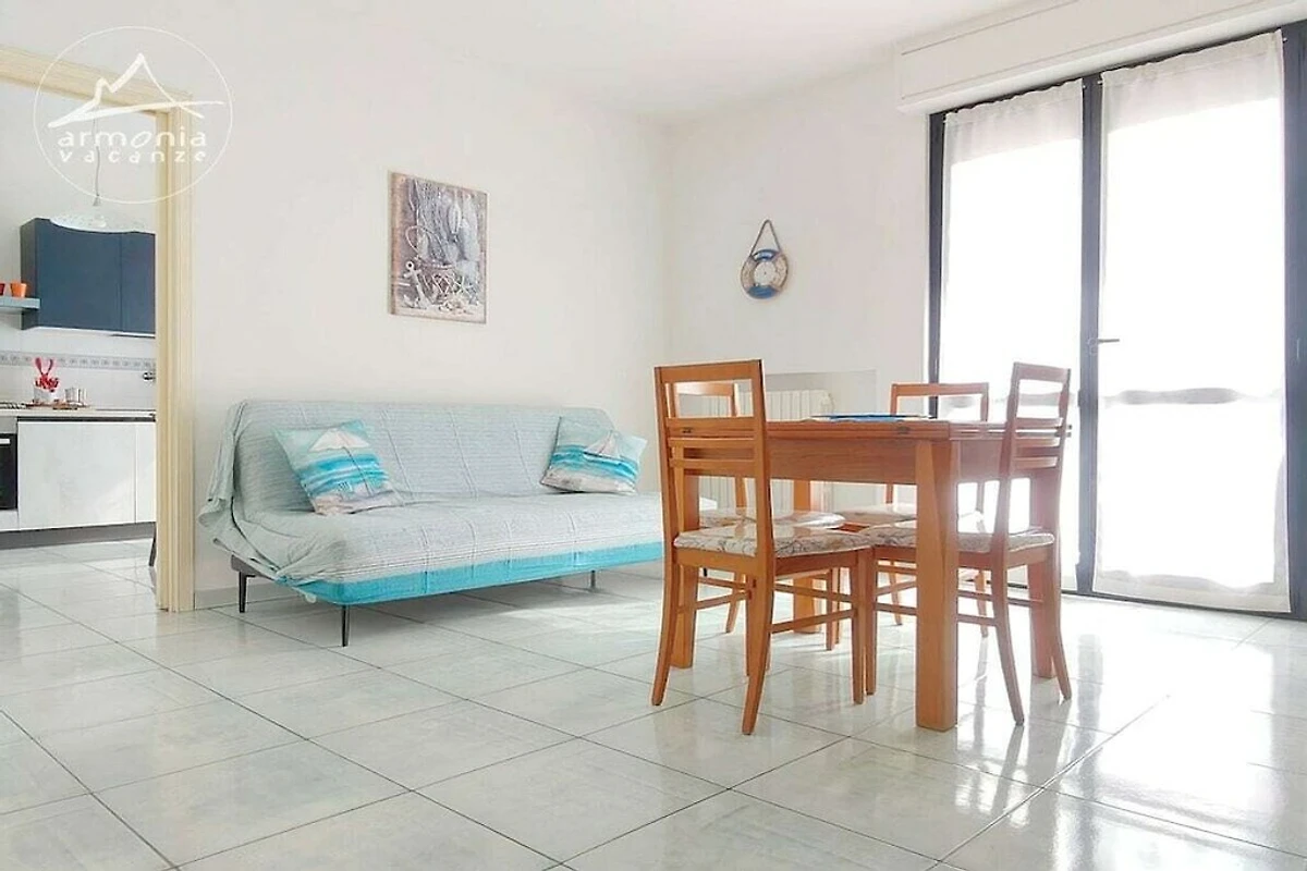 Die Wohnung wurde vor kurzem renoviert und verfügt über eine Eingangshalle, ein Wohnzimmer mit kleiner Terrasse, eine bewohnbare Küche mit Balkon, einen Flur, zwei Schlafzimmer: ein Doppelzimmer mit Balkon und ein Zweibettzimmer mit Fenster, sowie zwei Badezimmer, eines mit Badewanne und das andere mit begehbarer Dusche. Eine große Garage rundet die Beschreibung ab.
