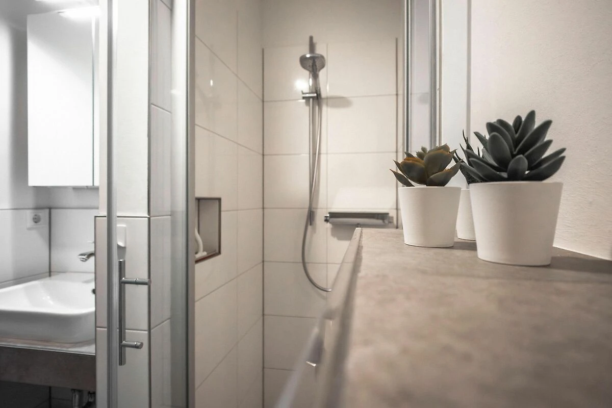 Das modern eingerichtete Apartment verfügt über insgesamt zwei Zimmer, darunter ein separates Schlafzimmer mit komfortablen Schlafmöglichkeiten für zwei Personen. Im angenehm gestalteten Wohnbereich erwarten Sie eine bequeme (Schlaf-)Sofaecke und ein Essbereich mit Esstisch und Garderobe. Die offene Küche, die sich nahtlos an das Wohnzimmer anschließt, ist mit zahlreichen praktischen Küchenutensilien ausgestattet. Hierzu zählen unter anderem ein 2-Platten-Herd, eine Mikrowelle, ein Wasserkocher, eine Kaffeemaschine, ein Toaster sowie ein Kühlschrank mit Gefrierfach. Geschirr und Besteck sind ebenso vorhanden wie Erstausstattung an Verbrauchsmaterialien, sodass es Ihnen an nichts fehlt, um Mahlzeiten bequem selbst zuzubereiten.
