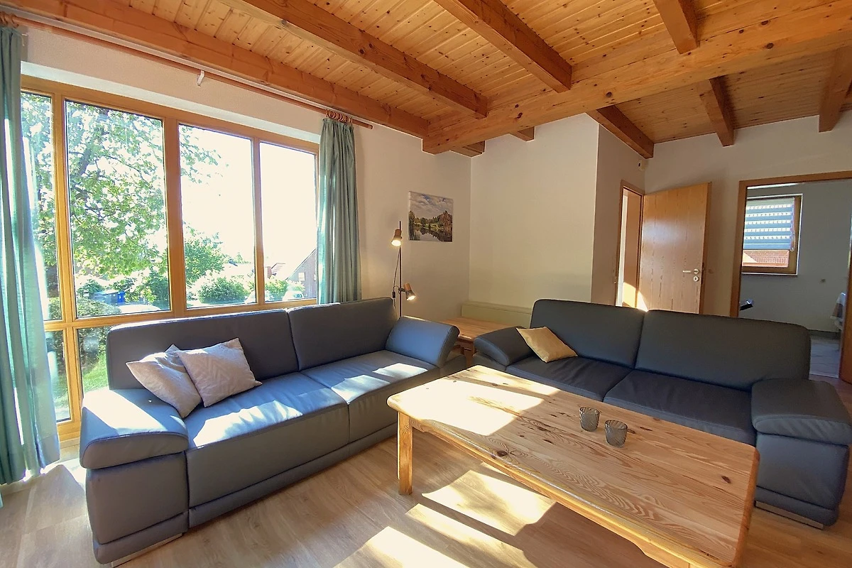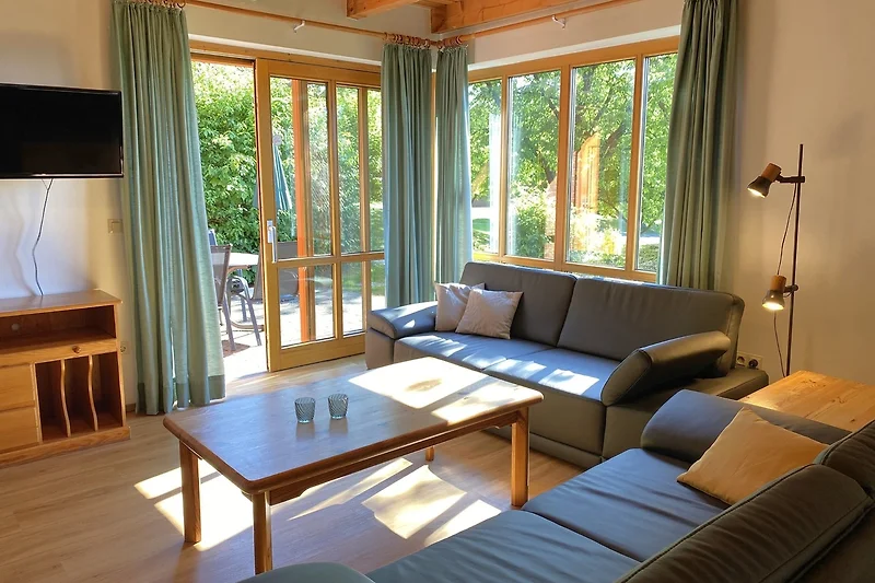 Der Park besteht aus 15 gemütlichen Doppelhäusern und einem Haupthaus mit modernen Ferienwohnungen. Dieses Ferienhaus (Haus Nr. 16) bietet Platz für 7 Personen und überzeugt durch grosszügige, helle Räume, einen eigenen Eingang, eine Terrasse mit Grill sowie einen Kaminofen für gemütliche Abende. Die voll ausgestattete Küche mit Spülmaschine und der zentrale Esstisch sorgen für Komfort und gemeinsame Erlebnisse.