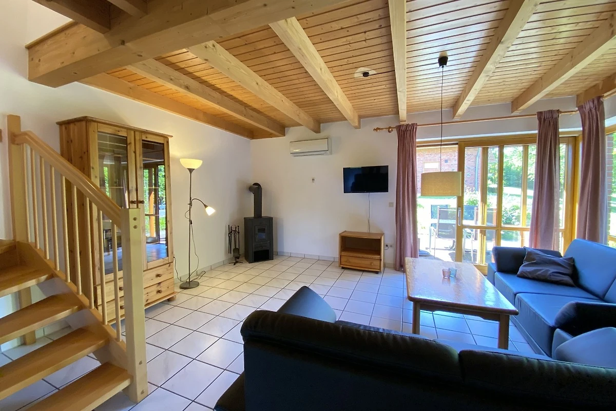 Der Park besteht aus 15 gemütlichen Doppelhäusern und einem Haupthaus mit modernen Ferienwohnungen. Dieses Ferienhaus (Haus Nr. 20) bietet Platz für 7 Personen und überzeugt durch grosszügige, helle Räume, einen eigenen Eingang, eine Terrasse mit Grill sowie einen Kaminofen für gemütliche Abende. Die voll ausgestattete Küche mit Spülmaschine und der zentrale Esstisch sorgen für Komfort und gemeinsame Erlebnisse.
