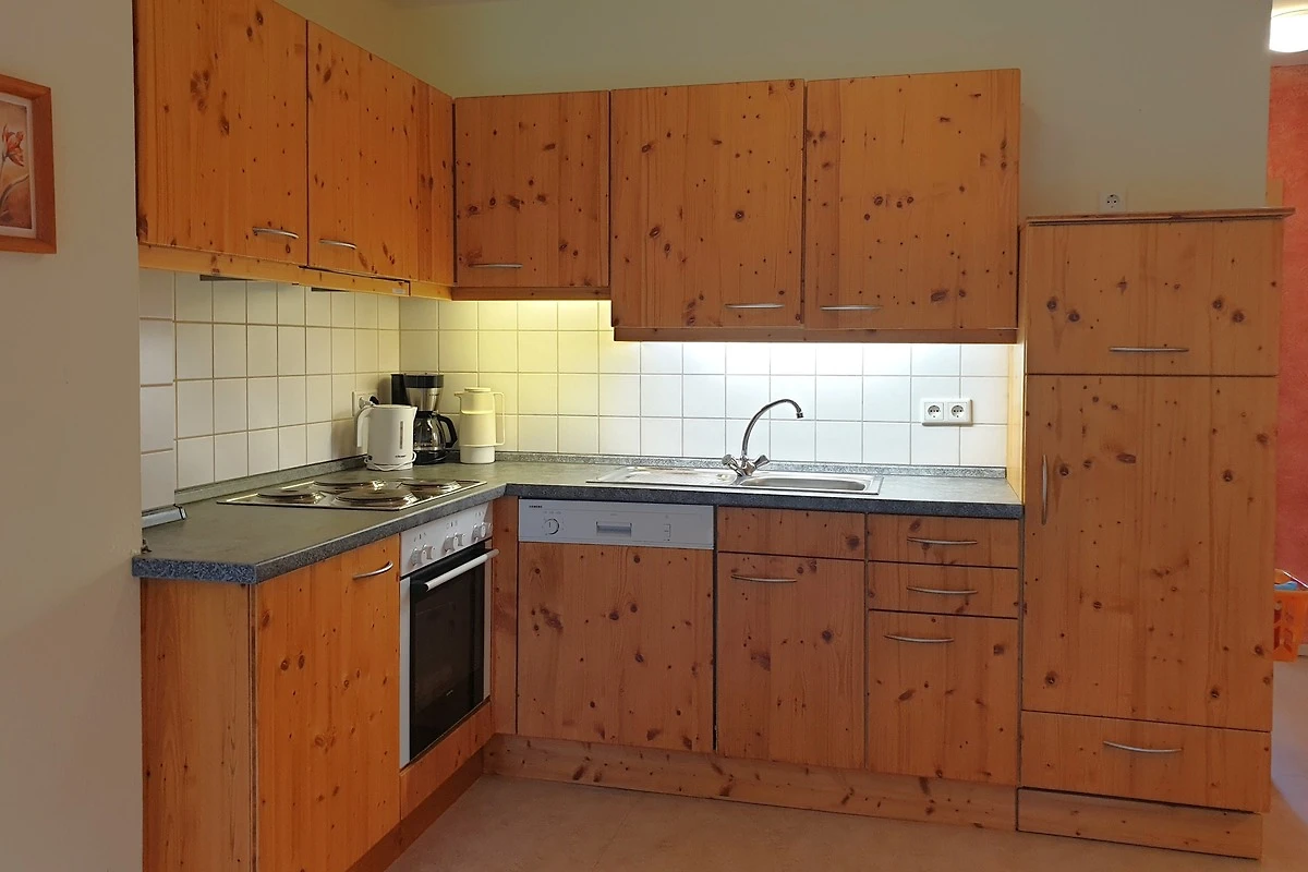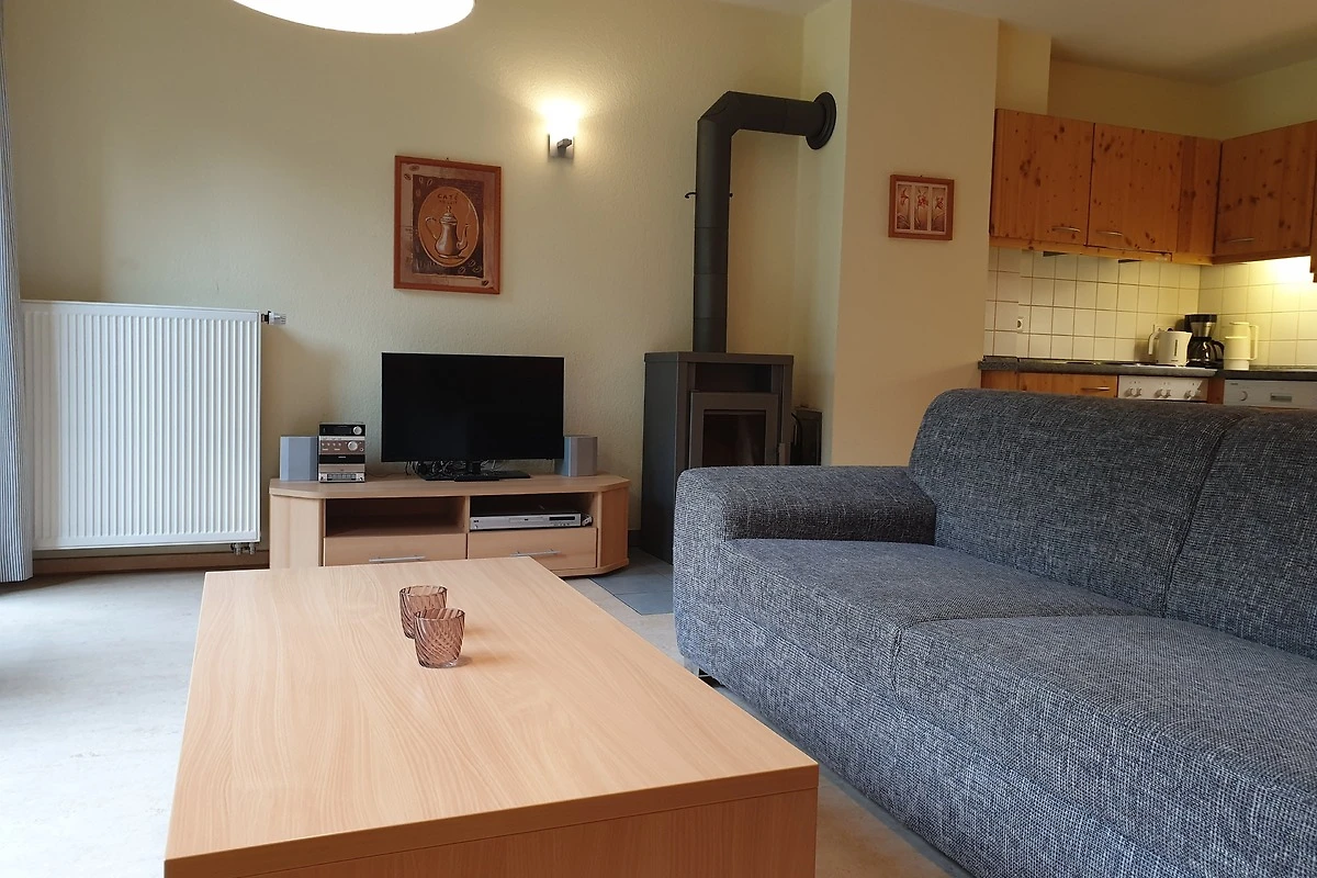 Der Park besteht aus 15 gemütlichen Doppelhäusern und einem Haupthaus mit modernen Ferienwohnungen. Die Ferienwohnung 32 hat 67m² und bietet reichlich Platz für 1-5 Personen. In der Wohnung befinden sich ein geräumiges Wohnzimmer, ein Badezimmer und zwei Schlafzimmer (2 Einzelbetten, 1 Doppelbett + Einzelbett). Die Ferienwohnung verfügt zudem über eine Terrasse sowie einen Kaminofen für gemütliche Abende. Die voll ausgestattete Küche mit Spülmaschine und der zentrale Esstisch sorgen für Komfort und gemeinsame Erlebnisse.