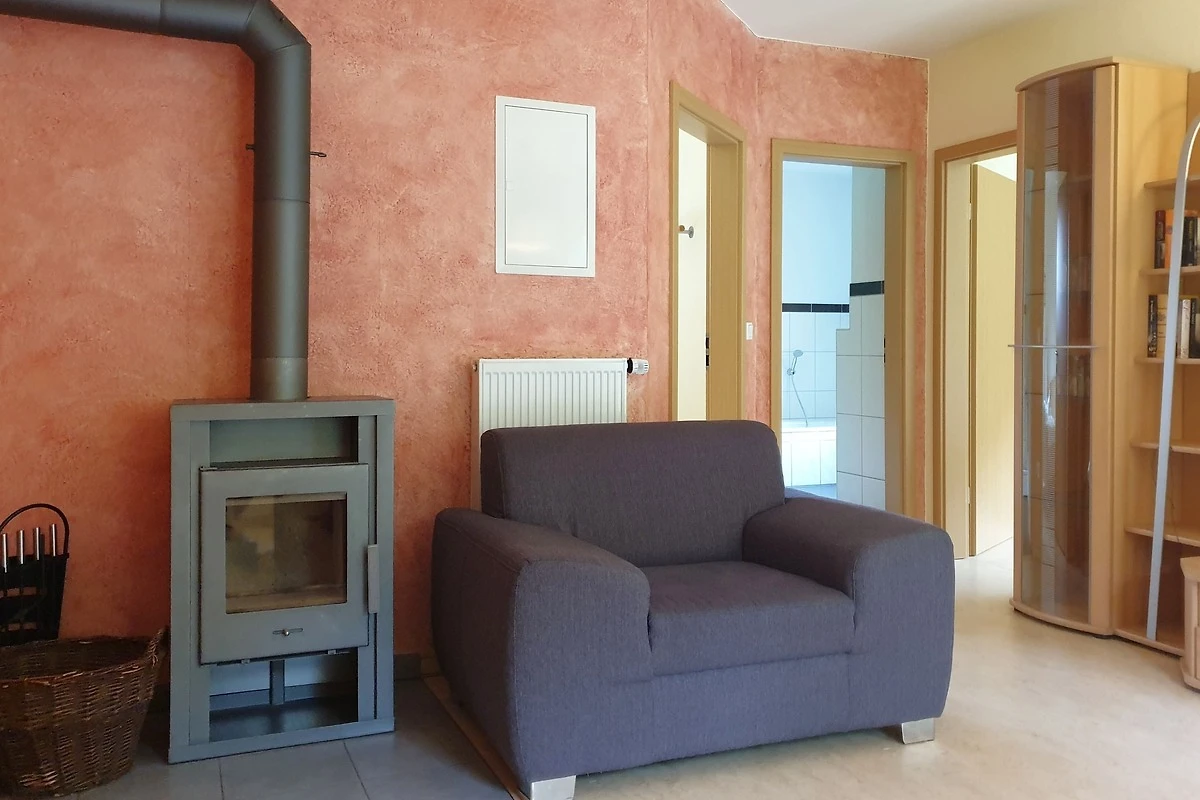 - Terrasse mit Grill & Kaminofen im Wohnzimmer