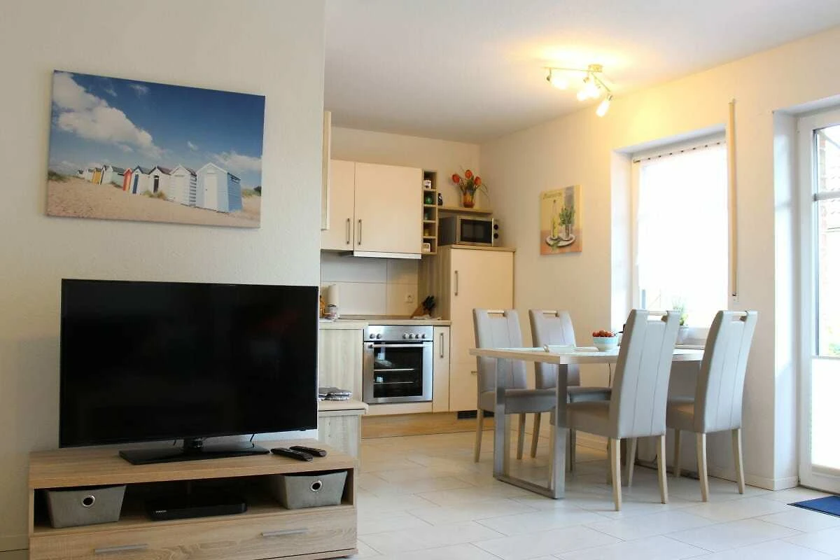 Die Erdgeschoß Ferienwohnung Sturmflut in Norden bietet auf 73 m² Platz für bis zu 4 Gäste und ist ideal für einen erholsamen Aufenthalt an der Nordsee im Nationalpark Wattenmeer.. Zwei helle Schlafzimmer mit neuen Komfort-Matratzen stehen bereit für einen erholsamen Schlaf. Das moderne Badezimmer mit bodengleicher 1 x 1 m großer Dusche nebst Duschhocker sorgen für einen guten Start in den Tag.. Die offene Küche lässt keine Wünsche offen: Sie verfügt über einen Geschirrspüler, eine Mikrowelle, Wasserkocher, Kaffeemaschine, Tassimo- Kapselautomat , Mixer sowie ein Gefrierfach und reichlich Kücheninventar. Im Wohnbereich lädt eine Couch und ein Sessel zu entspannten Stunden ein, und ein großer Fernseher sowie kostenfreies WLAN sorgen für Unterhaltung.