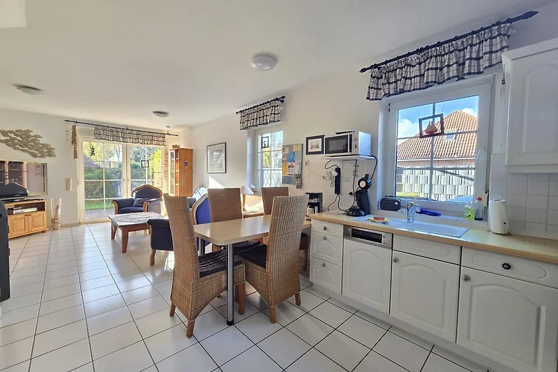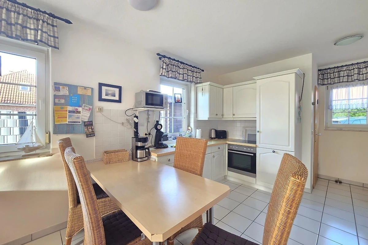 Das Nordseeferienhaus Ehlers liegt am ruhigen Ortsrand von Nessmersiel, nur wenige Gehminuten vom Zentrum entfernt. Diese Lage ermöglicht es den Gästen, Restaurants, Einkaufsmöglichkeiten und den Deich schnell zu erreichen. Nessmersiel, auch als "Tor zur Insel Baltrum" bekannt, bietet eine Vielzahl von Freizeitmöglichkeiten. Hier können unvergessliche Wattwanderungen zur Insel Baltrum unternommen und entspannende Spaziergänge am Deich mit Blick auf die Nordsee genossen werden. Aktive Urlauber finden zahlreiche Wege zum Radfahren und Kanuwandern in der Umgebung. Das moderne Wellness- und Freizeitcenter Sturmfrei ist ebenfalls in der Nähe und bietet Erholung für alle Altersgruppen. Die zentral gelegene Unterkunft ermöglicht zudem den einfachen Zugang zu weiteren Ausflugszielen in Ostfriesland, darunter Norden-Norddeich und Greetsiel. Die Anreise erfolgt bequem über die Hauptstrassen, die Nessmersiel optimal anbinden.