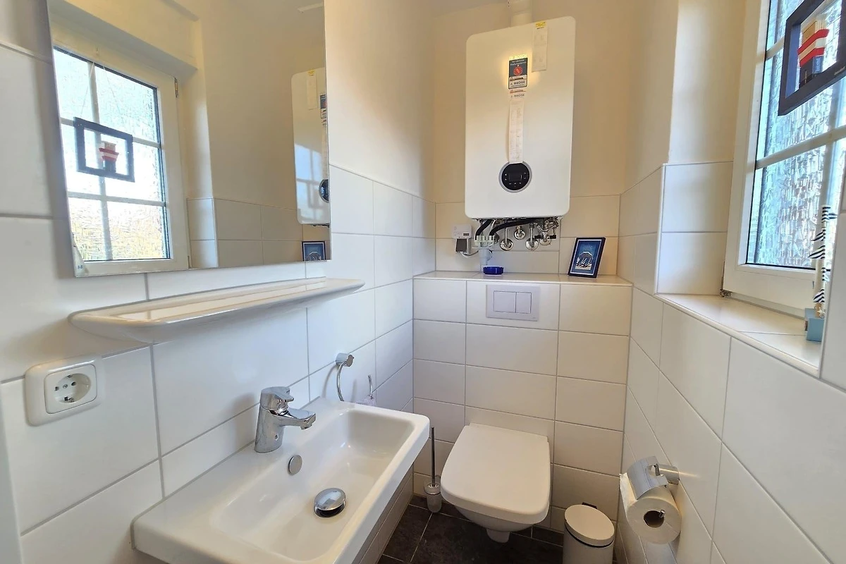 Das Nordseeferienhaus Ehlers in Nessmersiel überzeugt durch seine moderne und komfortable Ausstattung. Es bietet zwei geschmackvoll eingerichtete Schlafzimmer, beide mit komfortablen Doppelbetten, die ideal für Paare und Familien sind. Im Erdgeschoss befindet sich ein 2025 renoviertes Gästebad mit Fenster, während im Obergeschoss ein modernes Tageslichtbad mit Dusche zur Verfügung steht. Die liebevoll gestaltete Inneneinrichtung sorgt für ein behagliches Urlaubsgefühl. Dazu bietet das Haus einen eingezäunten Garten, der mit einer sonnigen Terrasse ausgestattet ist, die zu erholsamen Momenten einlädt. Gemeinschaftlich nutzbare Einrichtungen befinden sich in der Nähe und sind für die Gäste leicht erreichbar. Die zentrale Lage gewährleistet zudem eine kurze Distanz zu Restaurants, Einkaufsmöglichkeiten und dem Deich.