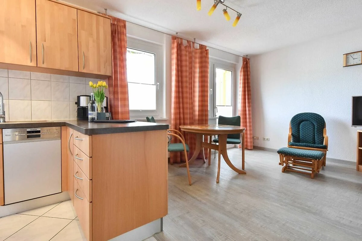 Das liebevoll eingerichtete Appartement befindet sich im obersten Stock eines Mehrfamilienhauses. Ein Fahrstuhl ist im Haus vorhanden. Neben einem separaten Schlafzimmer sowie dem mit Dusche und Waschmaschine ausgestatteten Bad finden Sie ein grosses Wohnzimmer mit komplett ausgestatteter Küche vor. Auf dem überdachten Balkon können Sie die Sonne geniessen. Ein PKW-Stellplatz befindet sich am Haus, WLAN ist vorhanden.