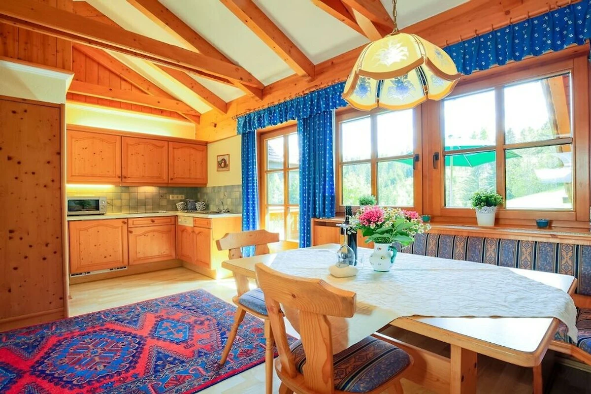 Die Ferienwohnung SONNBLICK ist sehr gemütlich in Fichte Vollholz eingerichtet. Vom Wohnraum aus kommt man auf die schöne Sonnenterrasse in Südrichtung hat direkten Blick auf die Berge. Sie werden sich bestimmt wohlfühlen.