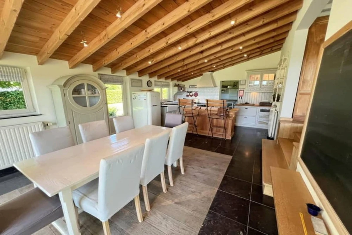 Zahlreiche praktische Annehmlichkeiten tragen zu einem angenehmen Aufenthalt bei. Die Villa verfügt über eine Zentralheizung, und das Badezimmer bietet eine erfrischende Dusche sowie ein separates WC. Für längere Aufenthalte stehen Ihnen eine Waschmaschine und ein Wäschetrockner zur Verfügung. Draußen können Sie auf der Terrasse mit Gartenmöbeln die frische Luft genießen. Die Lage ist hier ideal: Lokale Restaurants und öffentliche Verkehrsmittel sind nur eine kurze Autofahrt entfernt, und der Hauptbahnhof ist bequem zu erreichen. Auch die großen Flughäfen sind gut erreichbar, sodass diese Villa ein perfekter Ausgangspunkt für Ihren nächsten unvergesslichen Gruppenurlaub ist.
