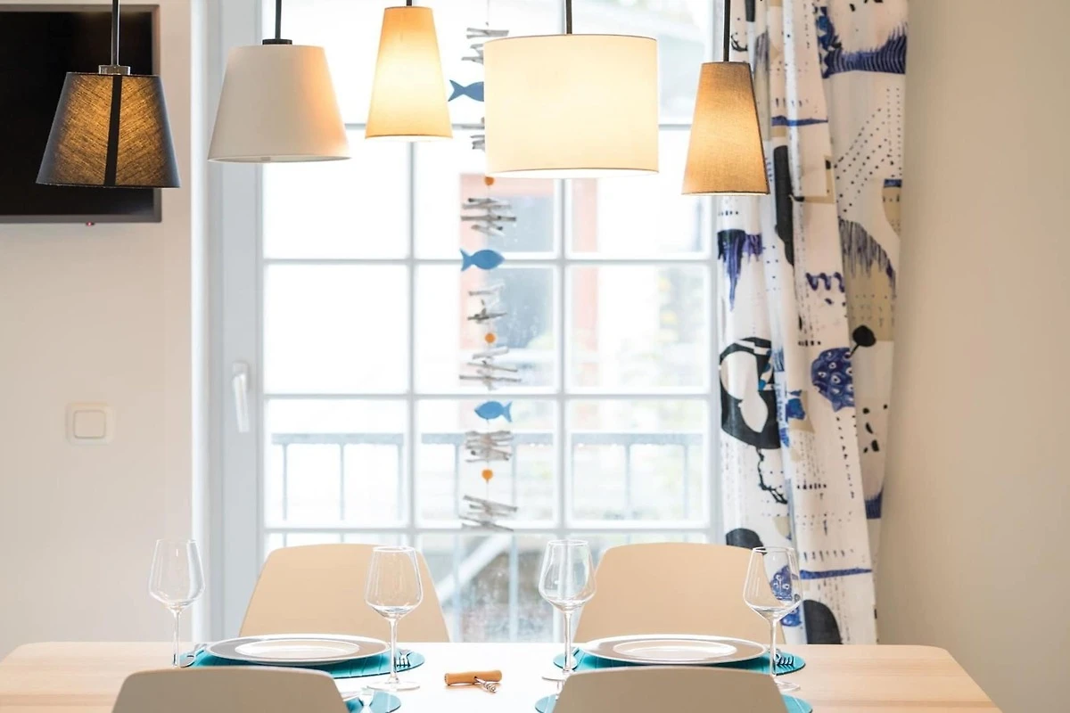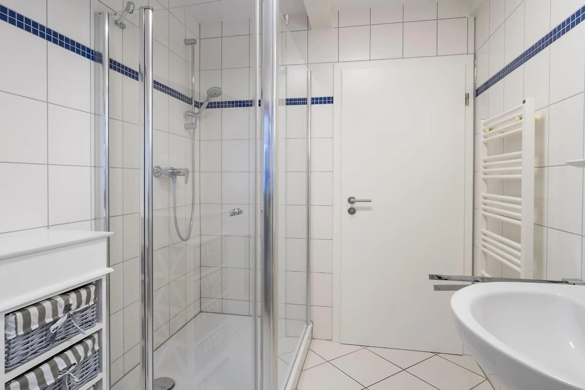 Dieses modern eingerichtete 67qm große Drei-Zimmer-Appartement befindet sich im 1. OG der Villa Bellevue. Das sonnige und gemütlich eingerichtete Wohnzimmer mit zwei gemütlichen Sofas lädt zum Verweilen ein. Wer ein Sonnenanbeter ist, ist hier genau richtig! Auf dem zum Süden ausgerichteten Balkon kann man viele Sonnenstunden genießen. Das Highlight dieser Wohnung ist eine kleine Sauna. Die Wohnung verfügt über zwei Schlafzimmer. Das größere von beiden ist ausgestattet mit einem Doppelbett und einem Kleiderschrank. Das kleine Schlafzimmer ist ausgestattet mit zwei stapelbaren Einzelbetten (80 x 200). Das Badezimmer ist mit einer Dusche ausgestattet. Einen kostenfreien WLAN-Zugang erhalten Sie bei der Anreise. Ein Pkw-Stellplatz befindet sich auf dem Grundstück.*In der Erstausstattung Reinigungsmittel sind enthalten: Seife, Toilettenpapier, Müllbeutel, Tabs, Lappen, Schwamm*Im Wäschepaket ist enthalten: Bettwäsche, 1 großes Duschtuch, 1 kleines Handtuch, 1 Duschvorleger pro Dusche, 1 Geschirrt