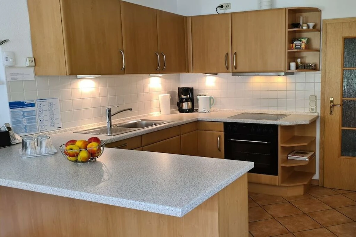 Die 78 qm große Ferienwohnung verfügt über einen separaten Eingang, 2 separate Schlafzimmer und ein Wohnzimmer mit integrierter Küche.
