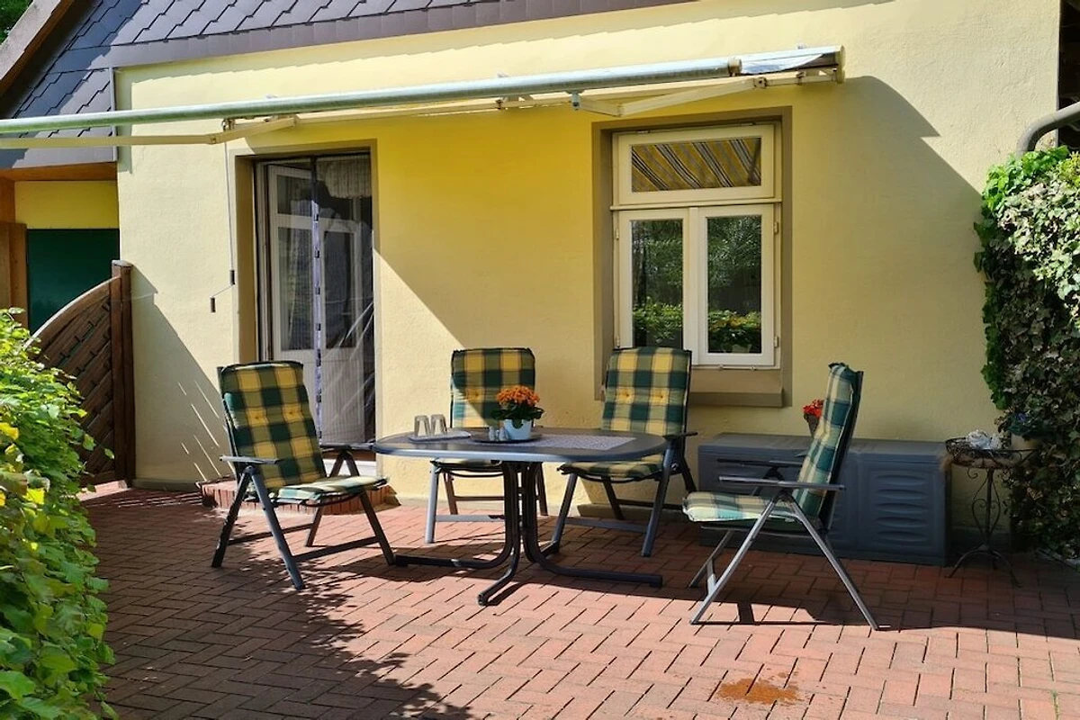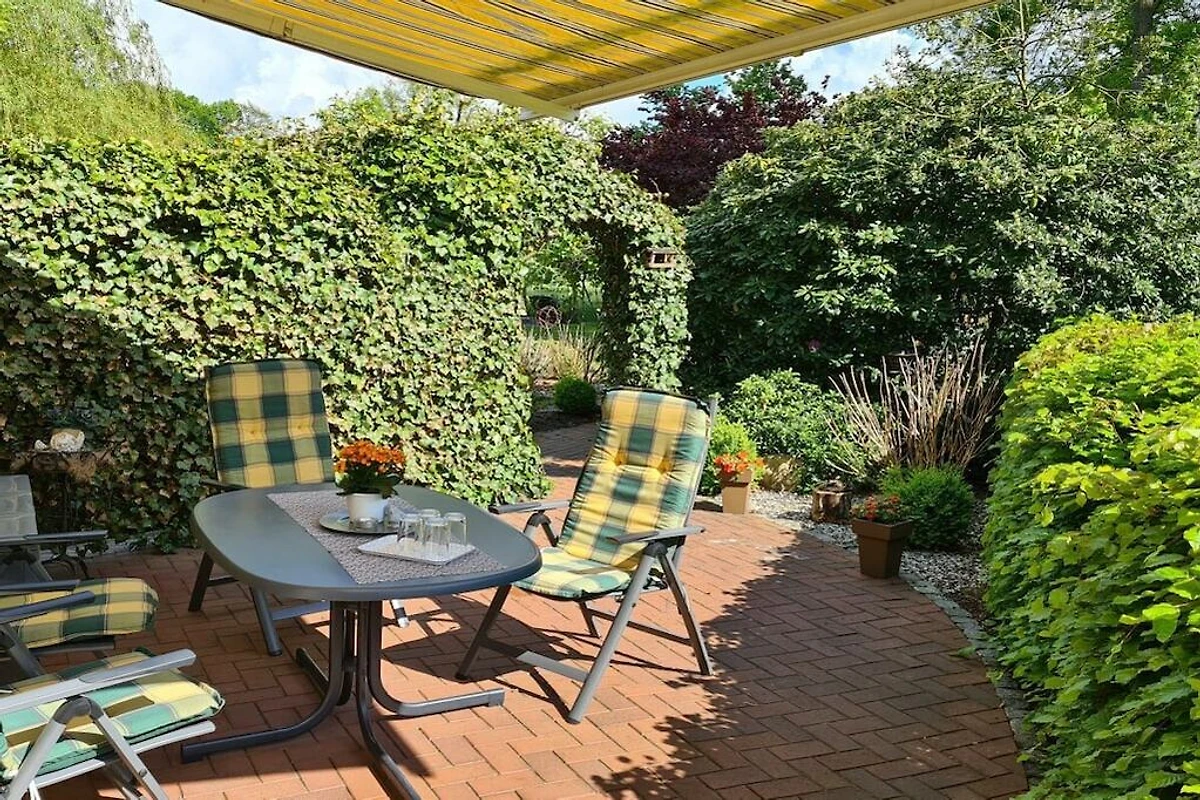 Ein Gartengrill ist vorhanden. Mit einer Markise kann man sich vor der Sonne schützen. Auf dem Hof befindet sich ein PKW-Stellplatz.