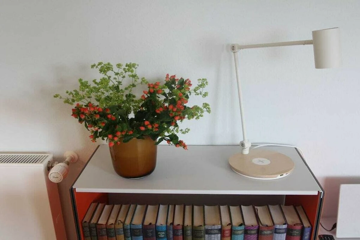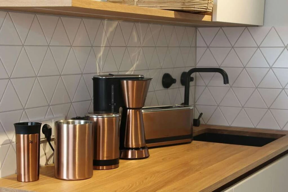 Im Schlafzimmer erwartet Sie ein für die Ferienwohnung gebautes Doppelbett aus massiver Eiche und ein geräumiger Einbauschrank. Das Bad ist mit italienischen Fliesen, einer großen Dusche und hochwertigen Sanitärelementen ausgestattet.