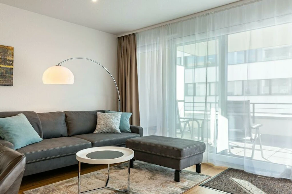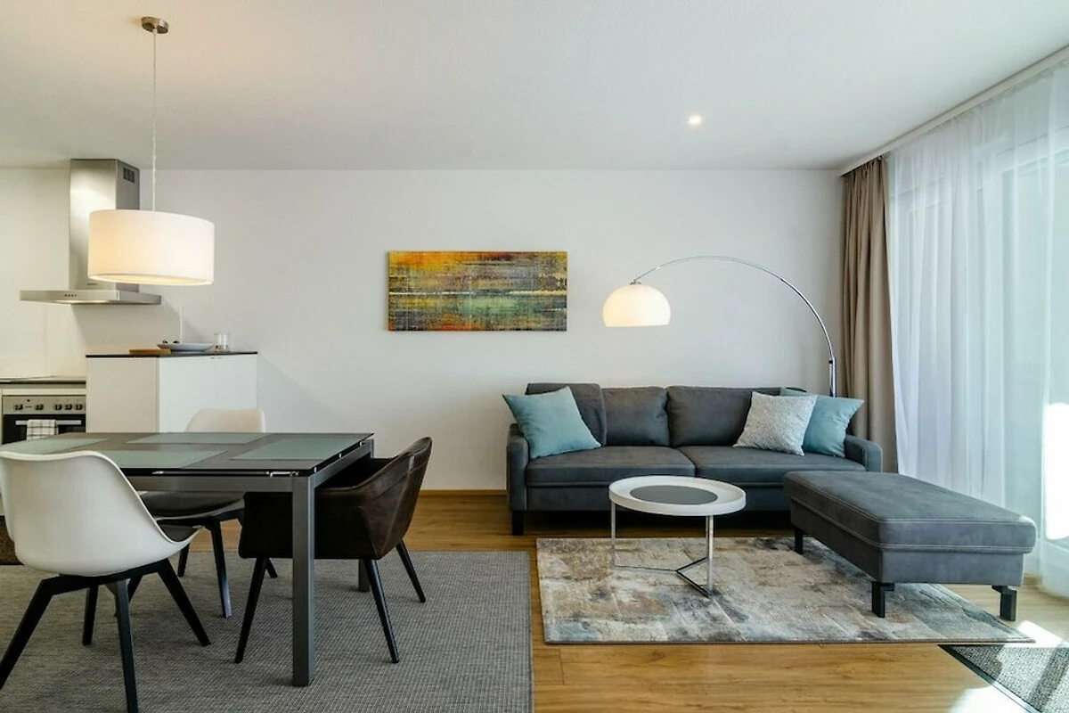 Das 2,5 Zimmer Apartment ALEX F****/DTV im 1. Stock einer modernen Wohnanlage ist komplett ausgestattet und bietet alles für den perfekten Aufenthalt in Überlingen. Großer Südbalkon/Terrasse, Aufzug, Tiefgarage, Fahrradraum und kostenloses WLAN natürlich vorhanden. Ideal für zwei Personen.