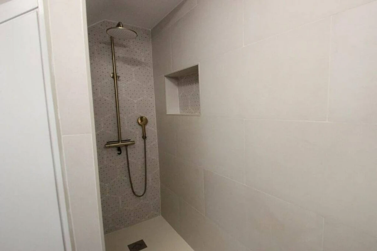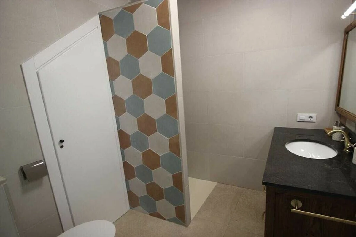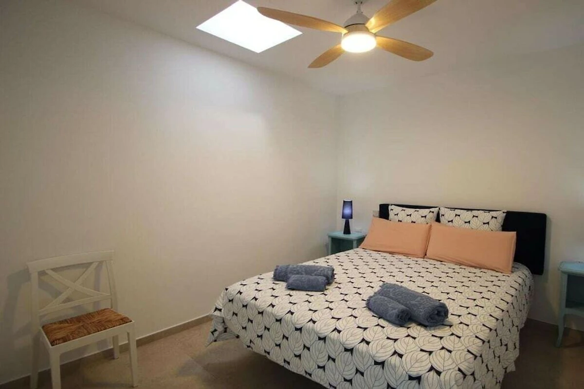 Im ersten Stock finden Sie drei schöne Schlafzimmer: zwei davon sind mit Doppelbetten (1,50 x 2 m) ausgestattet, während das dritte Schlafzimmer über zwei Einzelbetten (0,90 x 2 m) verfügt. Alle Schlafzimmer haben Deckenventilatoren, ideal für die heißesten Nächte. Es gibt auch ein modernes Badezimmer mit Dusche auf dieser Etage!