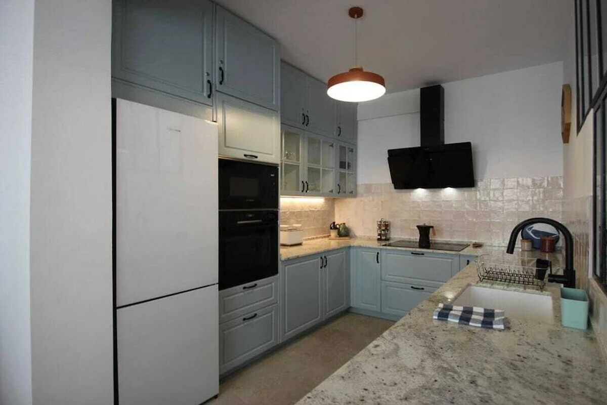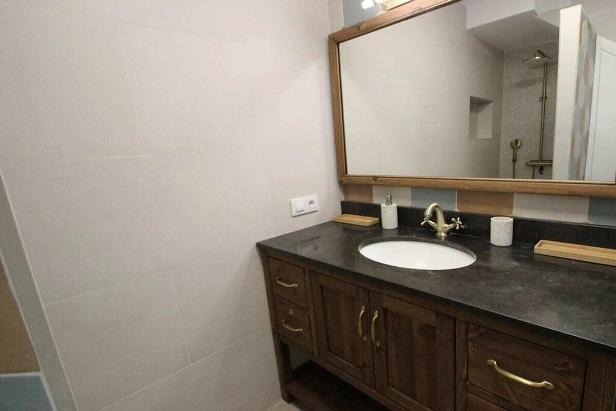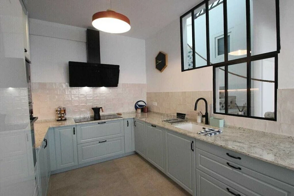 Im Erdgeschoss werden Sie von einem geräumigen, offen gestalteten Wohnbereich begrüßt. Die offene Küche ist voll ausgestattet mit modernen Geräten wie Backofen, Geschirrspüler, Mikrowelle, Kaffeemaschine und allen anderen notwendigen Kochutensilien. Das angrenzende Esszimmer und das Wohnzimmer schaffen einen gemütlichen Raum für gemeinsame Momente und Entspannung. Die Klimaanlage auf dieser Etage sorgt für eine kühle und angenehme Atmosphäre. Dank der WiFi-Verbindung bleiben Sie während Ihres Aufenthalts mit der Außenwelt verbunden. SmartTV ist verfügbar.