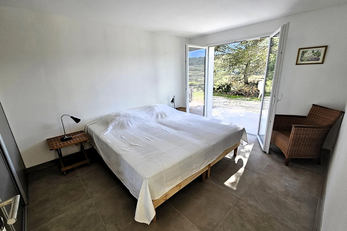 Hoch über den Weinbergen und sanften Hügeln des Hérault-Gebiets gelegen, bietet dieses friedliche Ferienhaus in Pierrerue einen Logenplatz inmitten unberührter Natur. Umgeben von sonnendurchfluteten Wäldern und dem Duft mediterraner Macchia, ist es ein Ort, an dem der Morgen vom Gesang der Vögel erklingt und die Abende unter einem rosafarbenen Horizont erstrahlen. Das Ferienhaus ist ideal für Familien oder Freunde und bietet Platz für bis zu sechs Gäste in einem ruhigen, modernen Ambiente, das Komfort mit authentischem südlichem Charme verbindet.