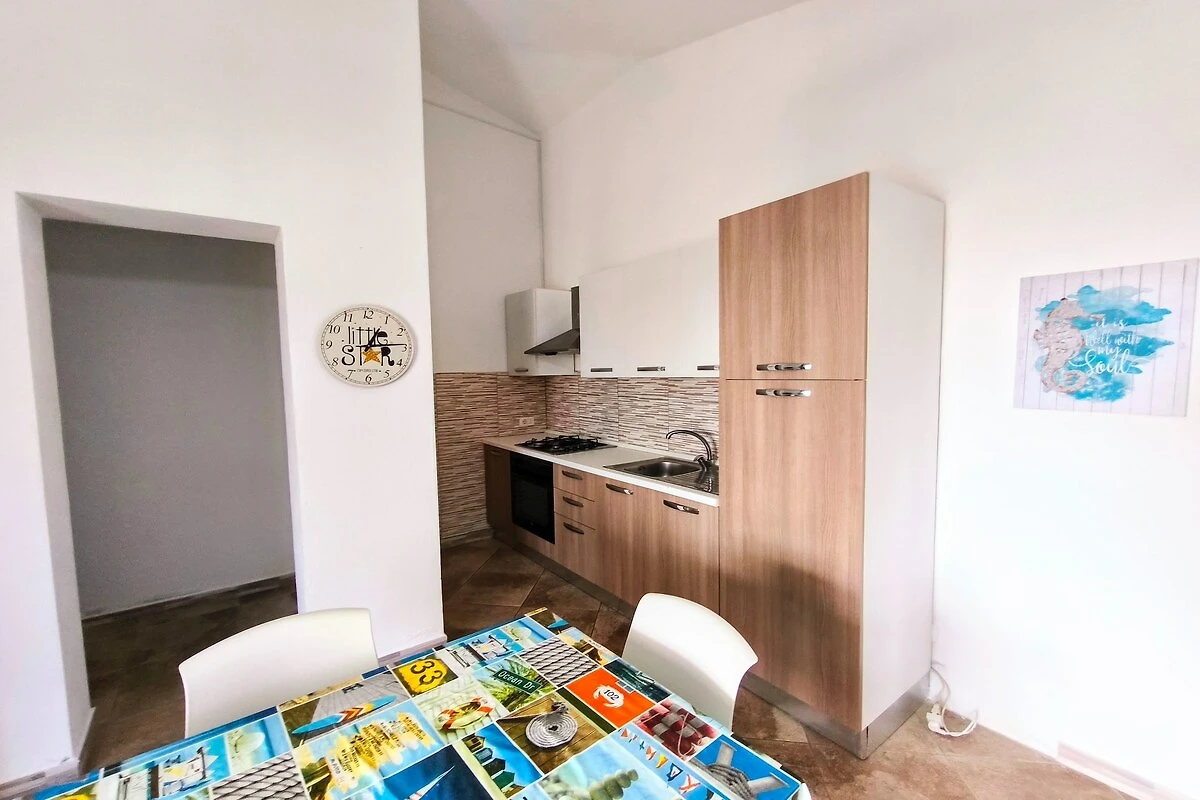 Im Inneren trifft modernes Design auf behagliche Gemütlichkeit. Der offene Wohnbereich lädt zum Verweilen ein und bietet ein bequemes Doppelschlafsofa, Klimaanlage und eine voll ausgestattete Küche – ideal für ein schnelles Frühstück oder ein gemeinsames Abendessen. Die beiden Schlafzimmer, eines mit Doppelbett und das andere mit Doppel- oder Zweibettzimmer, sind kühl und ruhig und verfügen jeweils über eine eigene Klimaanlage. Das elegante Badezimmer ist mit Dusche, Bidet und Waschmaschine ausgestattet, und Annehmlichkeiten wie Bügeleisen und Bügelbrett sorgen für einen unkomplizierten und angenehmen Aufenthalt. Jede Ecke zeugt von Sorgfalt, Harmonie und dezenter Eleganz.