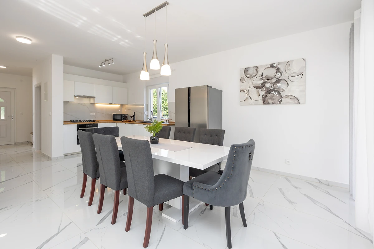 Entdecken Sie Villa Ivan, ein geräumiges und einladendes Ferienhaus, das in dem malerischen Primorski Dolac eingebettet ist und ideal für Familien und Gruppen ist, die einen unvergesslichen kroatischen Urlaub suchen. Diese atemberaubende Villa bietet bequem Platz für bis zu 8 Gäste in 4 wunderschön ausgestatteten Schlafzimmern und bietet reichlich Platz und Privatsphäre für jeden.