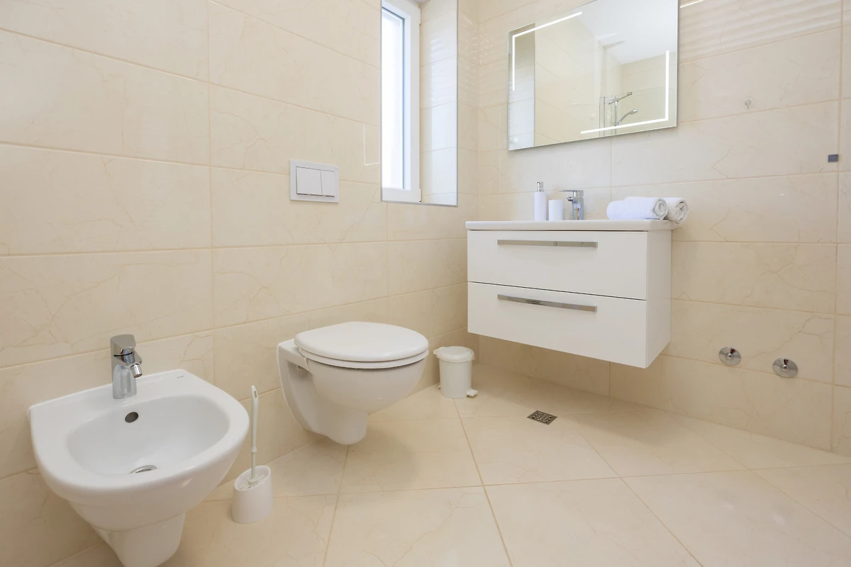 Geniessen Sie den Komfort der Klimaanlage im gesamten Objekt, die Sie während der warmen kroatischen Sommer kühl hält. Die Villa bietet privaten Parkplatz für 3 Fahrzeuge und ermöglicht sicheren und bequemen Zugang. Draussen wartet ein wunderschöner privater Garten, ausgestattet mit einem Grillbereich und einem vollständig eingezäunten Grundstück, ideal für Entspannung im Freien und Familienzusammenkünfte.