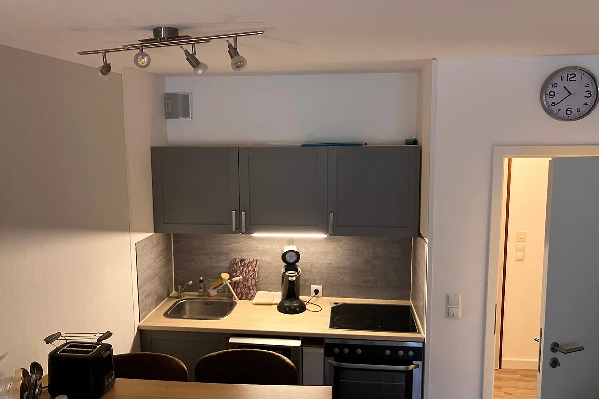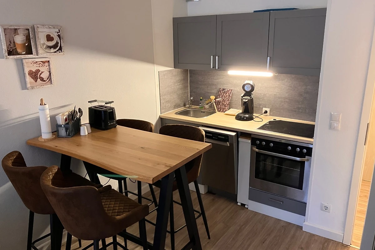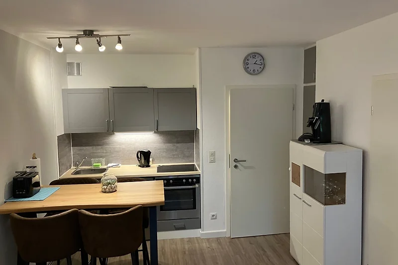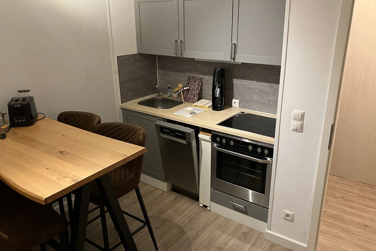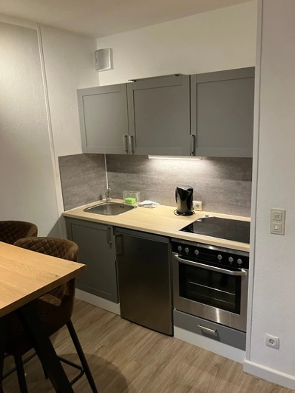 Die Küche ist mit einem Backofen und einem Ceran-Kochfeld ( Keine Induktion ) und einem Geschirrspüler ausgestattet.