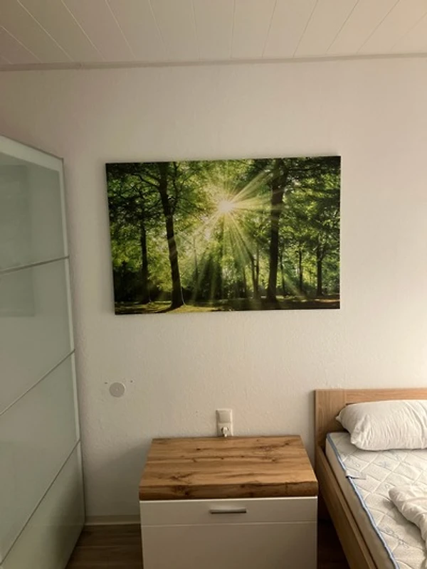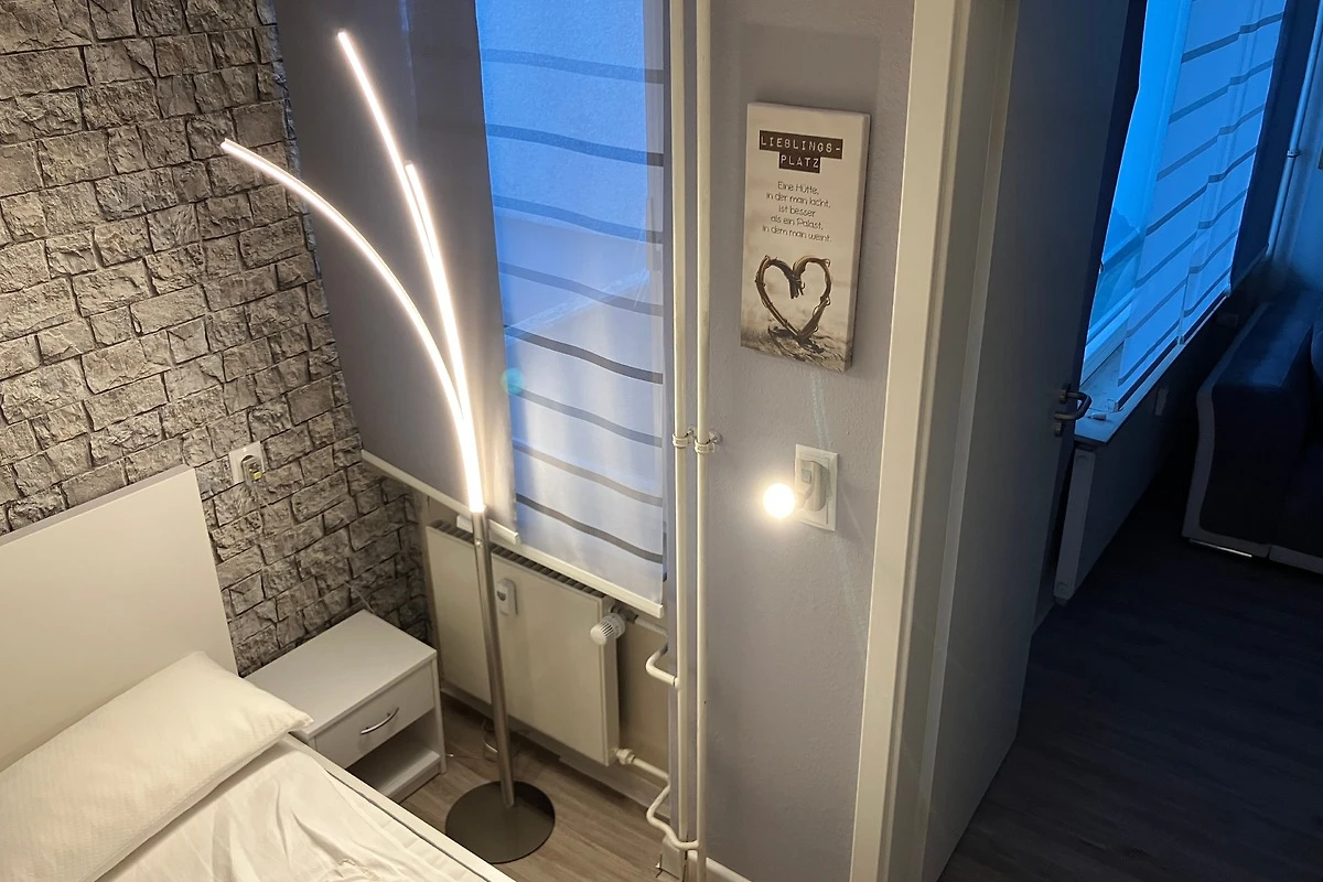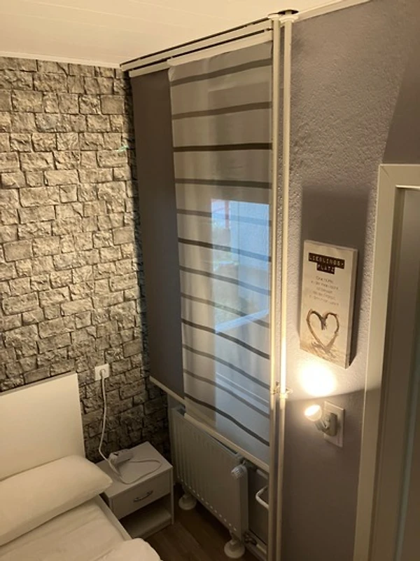 Im Schlafzimmer befindet sich ein Bett 140x200 und in dem zweiten Zimmer ein Bett 90 x 200.