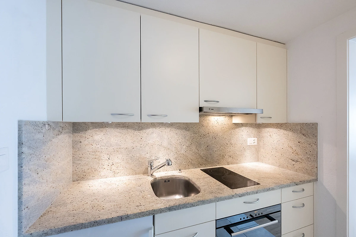 Separate Küche mit Dampfabzug, mit 2-Platten Glaskeramikherd, Kühlschrank mit Tiefgefrierfach,