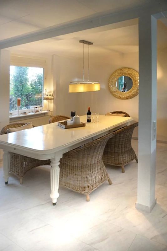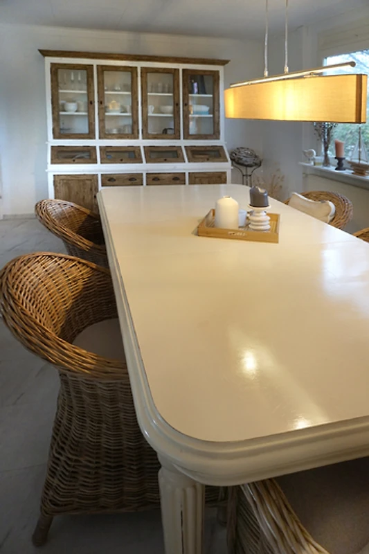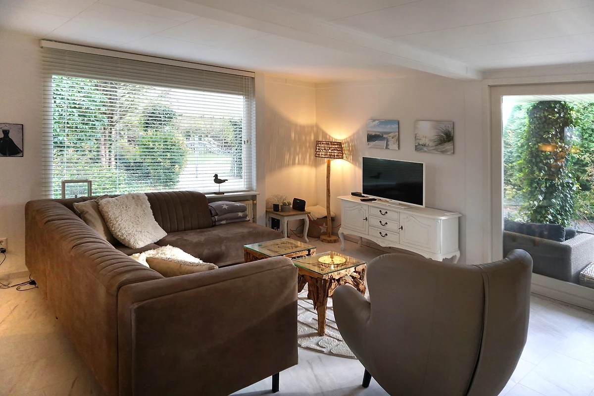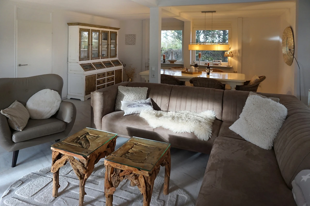 Zusätzlich zu den bereits erwähnten Annehmlichkeiten bietet das Ferienhaus Flügeltüren, die auf eine charmante, nach Süden ausgerichtete Terrasse führen. Der Garten ist komplett umzäunt und verfügt über mehrere gemütliche Sitzgelegenheiten.