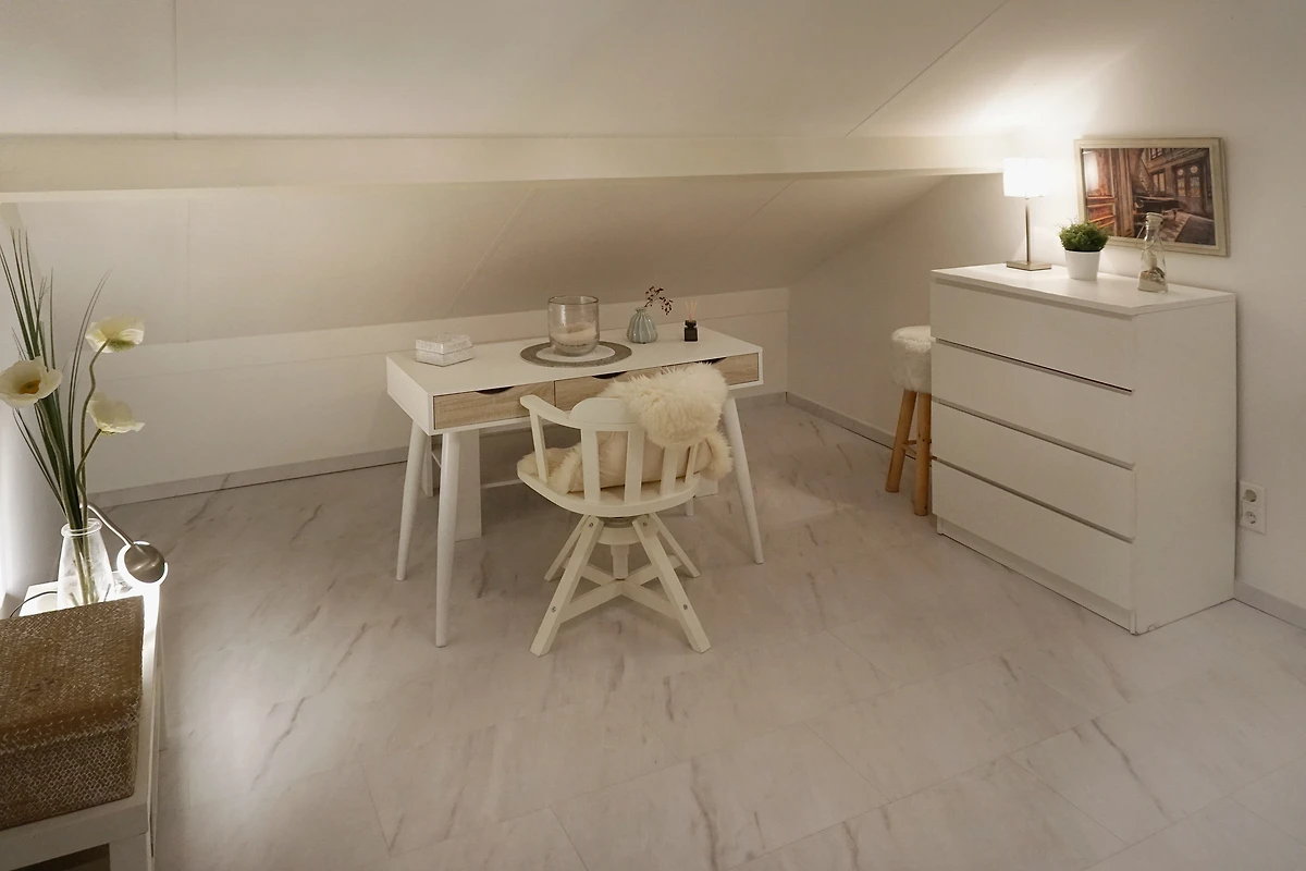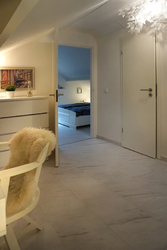 Eine Treppe führt ins Obergeschoss. Dort befinden sich ein separates WC und zwei Schlafzimmer, jeweils mit einem Doppelbett (160 x 200 cm und 140 x 200 cm).