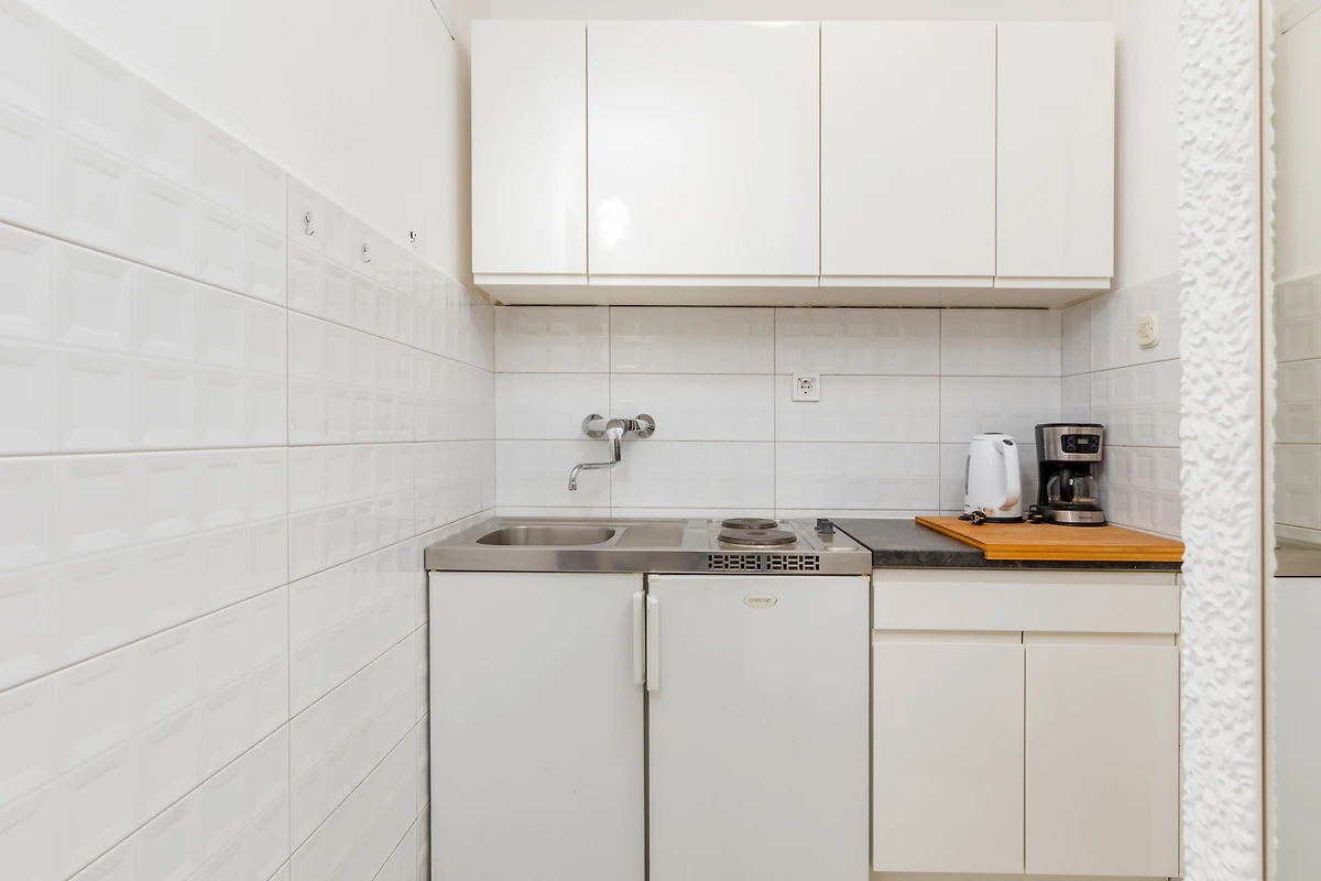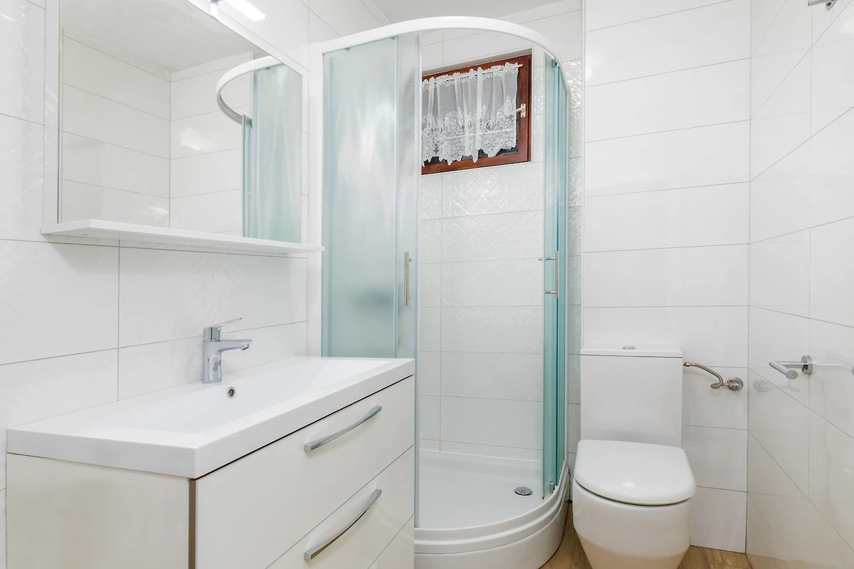 Die Wohnung verfügt über eine gut gestaltete Grundrissstruktur mit einem Schlafzimmer mit Doppelbett, das einen komfortablen Schlafbereich mit hochwertigen Bettwäsche bietet. Der Wohnbereich ist hell und einladend und schafft eine willkommene Atmosphäre zur Entspannung. Ein modernes Badezimmer mit Dusche gewährleistet Bequemlichkeit und Komfort während Ihres Aufenthalts.