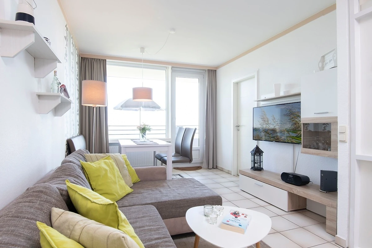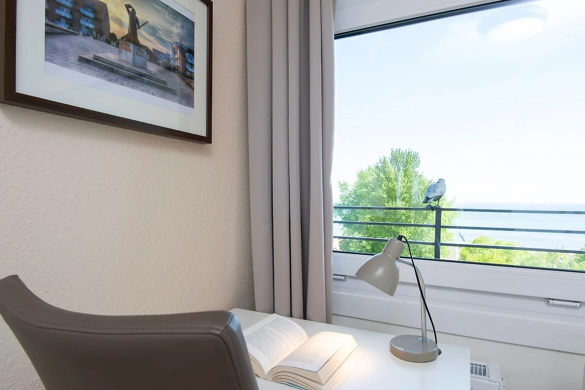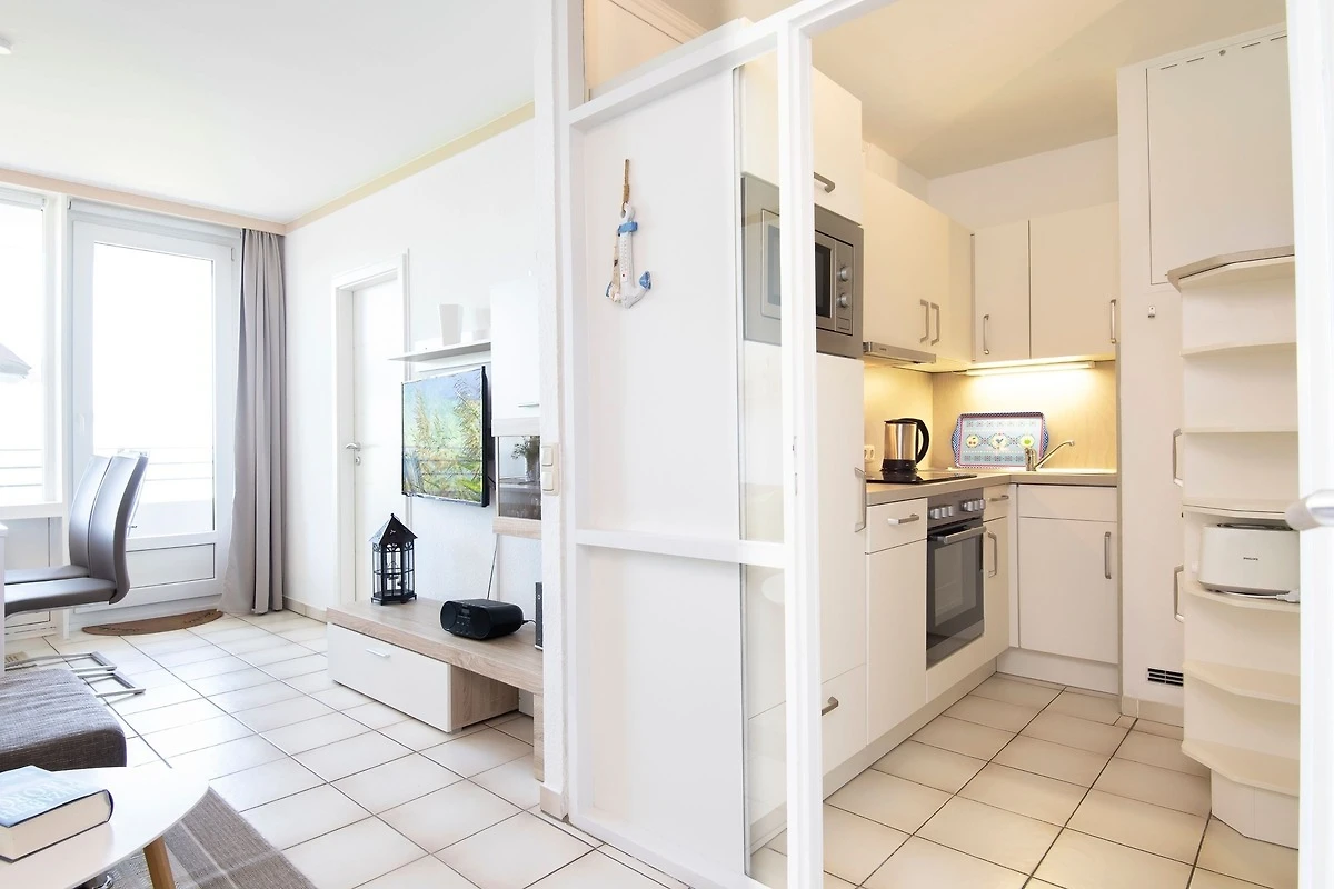 In bester Lage von Kellenhusen: traumhafte 2-Zimmer-Ferienwohnung im 6. Stock mit Balkon, Meerblick, Fahrstuhl und einer Wohnfläche von ca. 42 m² für bis zu 2 Personen.