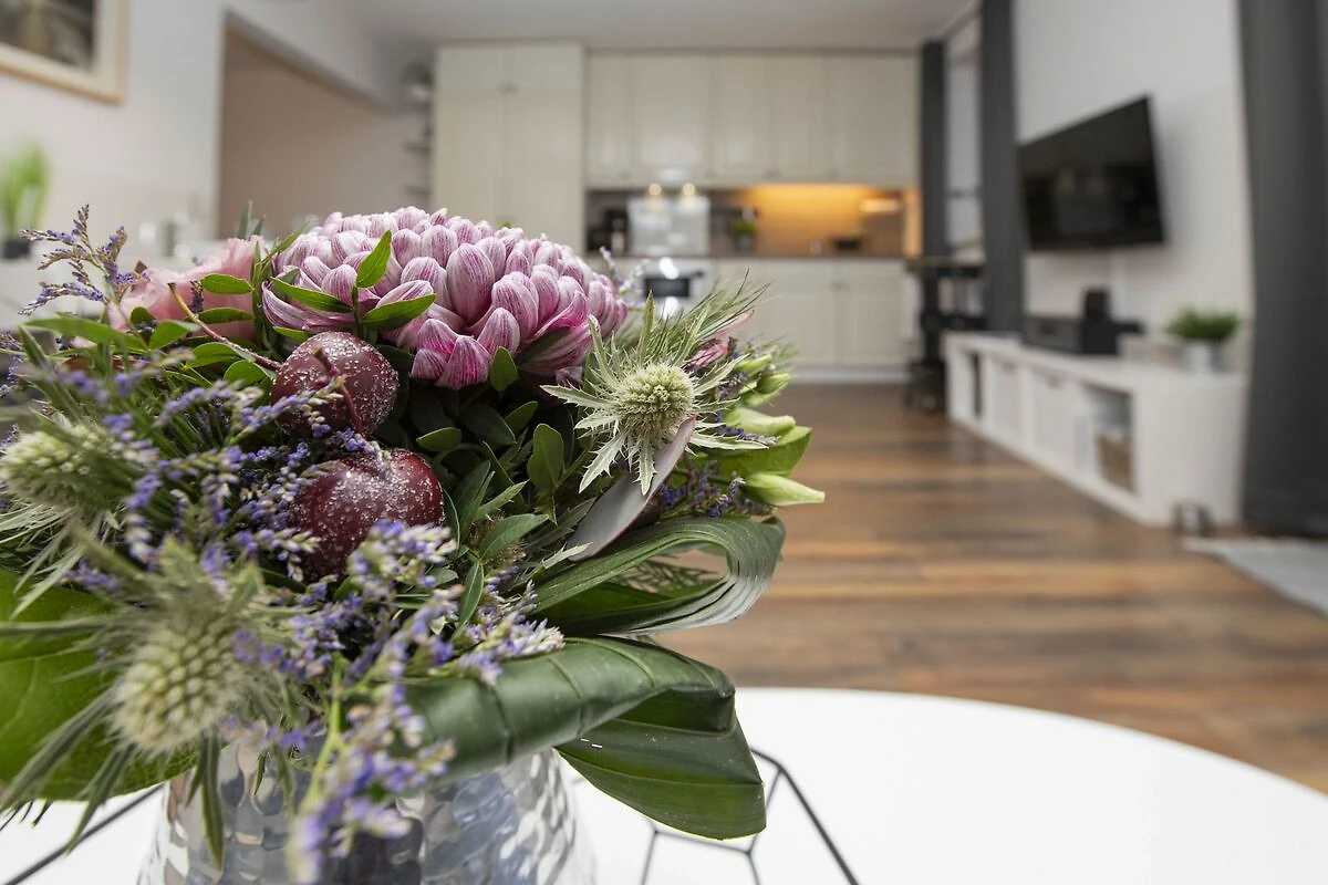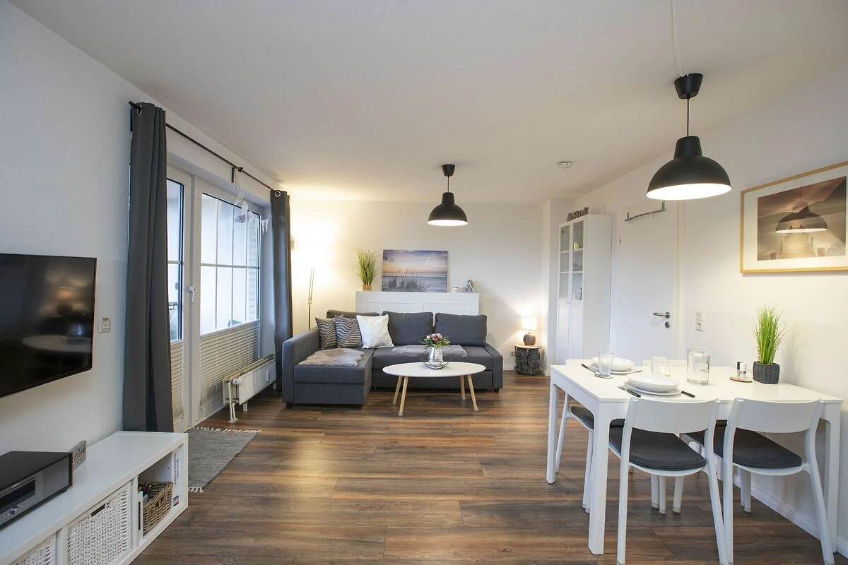 Die Wohnung mit einer Wohnfläche von 45 m² bietet ausreichend Platz für bis zu zwei Personen. Das gesamte Apartment ist mit einem Designerbelag ausgestattet und überzeugt durch Komfort und praktische Details. Das Wohnzimmer sorgt mit einer gemütlichen Sofaecke sowie bequemen Sesseln für entspannte Stunden nach einem erlebnisreichen Tag. Großzügige Fenster sorgen für helle Räume und bieten einen besonderen Blick aufs Meer. Für angenehme Temperaturen in jeder Jahreszeit sorgt eine moderne Zentralheizung. Alle Fenster verfügen über Sichtschutz, der Ihnen Privatsphäre garantiert.