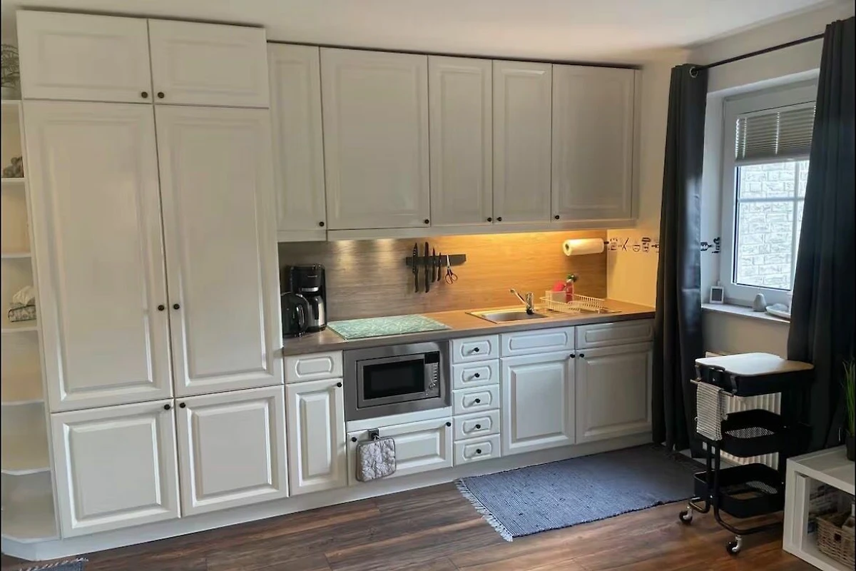 In puncto Unterhaltung und Kommunikation erwartet Sie ein großer Kabel-TV (44 – 55 Zoll), ein Radio sowie kostenfreies WLAN mit einer Geschwindigkeit ab 25 MBit/s (z.B. VDSL). So lassen Sie Ihre Urlaubstage entspannt ausklingen oder bleiben mit zuhause verbunden. Ein kostenloser privater Parkplatz direkt auf der Rückseite des Hauses ist im Mietpreis enthalten, was besonders bei Ausflügen in die Region oder zur Anreise sehr praktisch ist. Wir empfehlen die Anreise mit dem eigenen Auto.