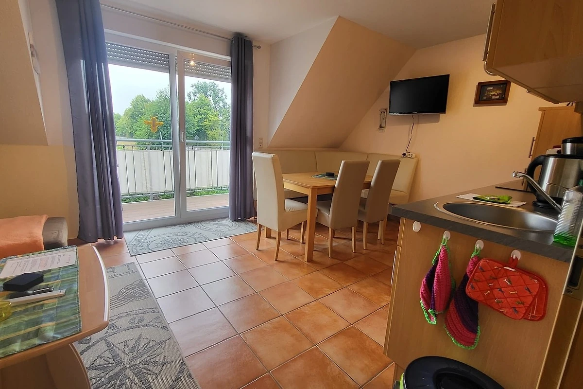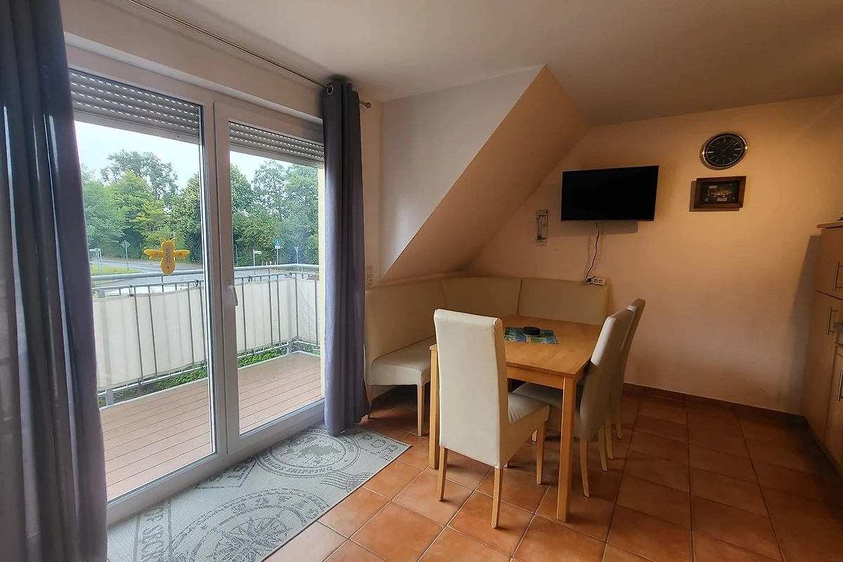 Auf dem 6,5 qm grossen Balkon können Sie die Aussicht und den Sonnenuntergang geniessen. Bollerwagen und Kinderbett vorhanden.