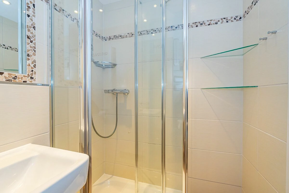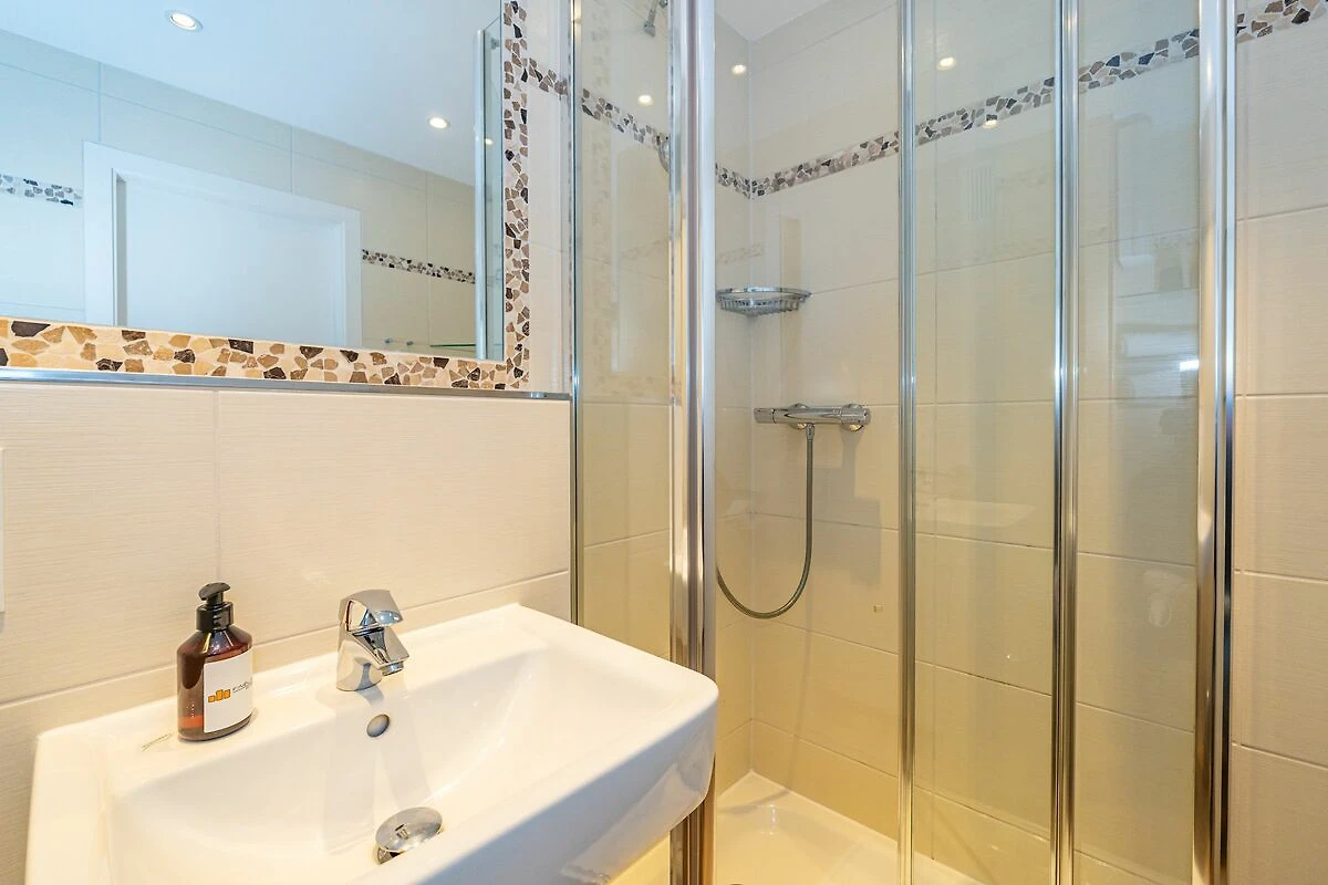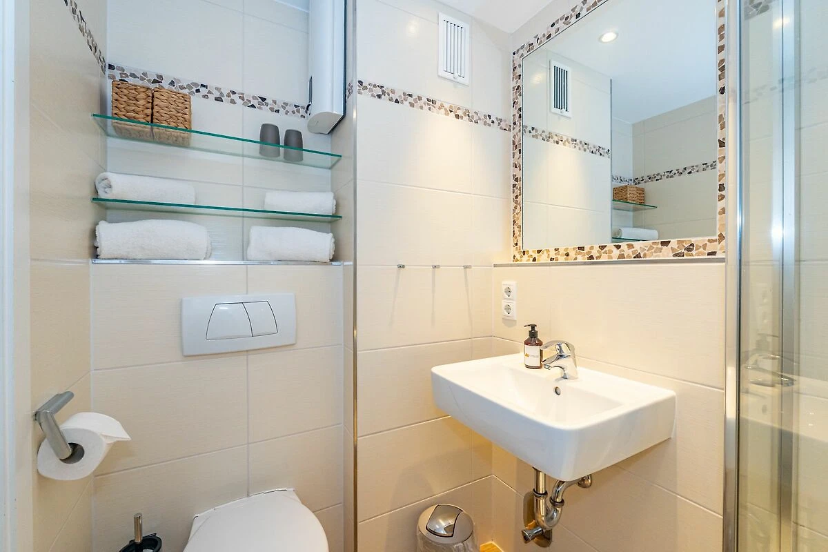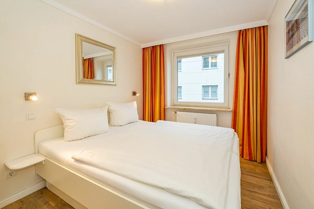 Die Ferienwohnung Dünenburg Wohnung 15 erwartet Sie in zentraler Lage in Westerland auf Sylt und bietet ideale Bedingungen für einen Aufenthalt in unmittelbarer Nähe zur Nordsee. Die modern und komfortabel ausgestattete Ferienwohnung befindet sich im 2. Stock und umfasst eine Wohnfläche von 40 m². Die Ferienwohnung verfügt über ein separates Schlafzimmer mit Doppelbett und Kleiderschrank. Der Wohnbereich ist komfortabel eingerichtet mit einem Sofa, Sessel, TV und Essplatz. Von hier aus haben Sie Zutritt zum Ostbalkon. Die offene Küche ist ausgestattet mit einem Ceranfeld, Backofen, Spülmaschine, Kaffeefiltermaschine, Wasserkocher und Toaster. Das Badezimmer verfügt über eine Dusche, WC und Waschbecken. Für weitere Annehmlichkeiten sorgt der private Parkplatz direkt am Haus, sodass Sie bequem mit dem Auto anreisen können.