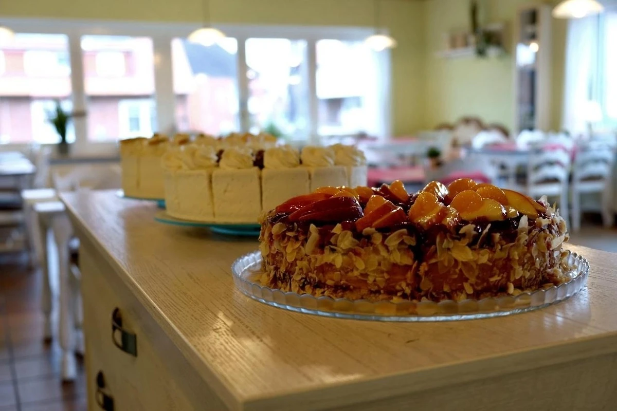 Frühstückspension in zentraler Lage mit hauseigenem Café. Wir bieten Ihnen 7 Doppelzimmer, 4 Einzelzimmer und 4 Ferienwohnungen für bis zu 6 Personen. Alle unsere Zimmer sind mit eigener Dusche/WC, SAT-TV/Radio und WLAN ausgestattet. Morgens erwartet Sie ein reichhaltiges Frühstücksbuffet und am Nachmittag frischer Kuchen und Torten im hauseigenen Café.