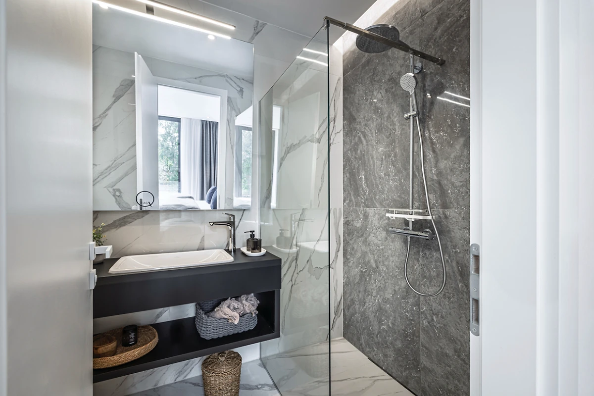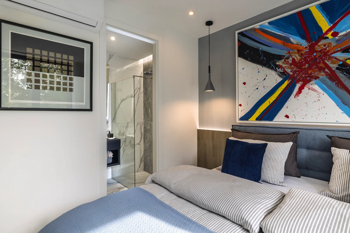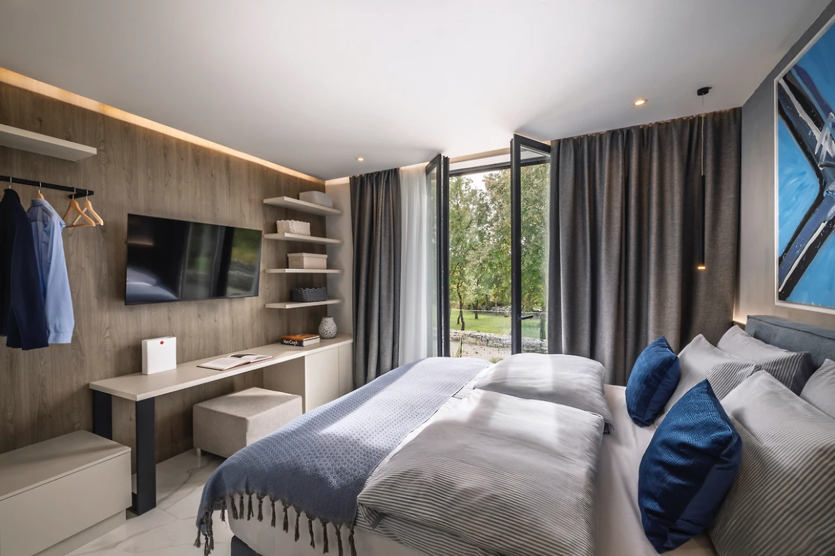 Die voll ausgestattete Küche verfügt über eine Küchenzeile, Mikrowelle, Wasserkocher und alles, was Sie für die Zubereitung Ihrer Lieblingsspeisen benötigen. Selbstverständlich sind Bettwäsche, Waschmaschine, Bügeleisen und schnelles Wifi vorhanden, damit Sie sich wie zuhause fühlen. Klimaanlage sorgt auch an heißen Tagen für angenehme Temperaturen. Im gemütlichen Wohnbereich erwartet Sie ein TV für entspannte Abende. Die harmonische Kombination aus hochwertigen Materialien, viel Tageslicht und geschmackvollem Interieur schafft eine einladende Atmosphäre, in der jeder Moment zum Genuss wird. Casa Q Istria – Ihr Feriendomizil für erholsame Tage in Istrien!