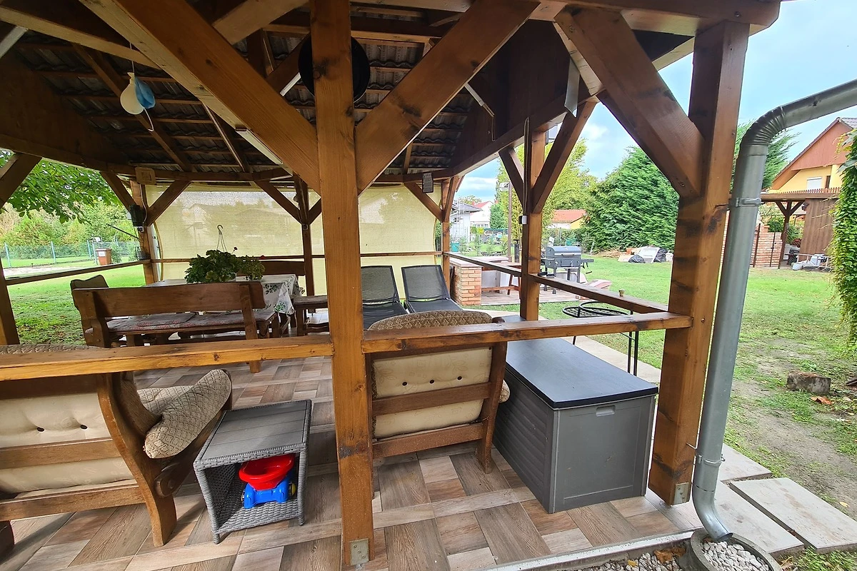 Hier weht der Duft des Balaton in der frischen Luft. Sommer, Ruhe, Balaton – eine perfekt Erholung in Fenyves. Das Balatonufer ist nur wenige Gehminuten entfernt, ebenso wie Restaurants, Eisdielen und der Bahnhof. Alles für ein authentisches Balaton-Erlebnis ist vorhanden – friedliche Entspannung in unmittelbarer Nähe zum See. Ein familienfreundliches Doppelhaus mit großem, weitläufigem Garten und separatem Eingang, in dem Sie die herzliche Gastfreundschaft des Balaton-Gastgebers erleben. Der Eigentümer bewohnt die andere Hälfte des Hauses. Mit diskreten und freundlichen Anwesenheit stören sie die Gäste in keiner Weise. Der großzügige Garten mit Sitzgelegenheiten, Grill- und Kochmöglichkeiten steht ausschließlich den Gästen zur Verfügung. Auch Fahrräder können abgestellt werden. Ob Familienurlaub, Entspannung mit Freunden oder nur eine ruhige Woche – hier fühlt sich jeder Gast wie zu Hause. Besonders Familien mit mehreren Kindern empfehlen wir das Haus, vor allem wegen der flexiblen Bettenaufteilung. Der Strand Balaton-Fenyves-Alsó ist nur wenige Schritte vom Haus entfernt. Sauber und bestens ausgestattet mit Umkleideräumen, Buffets und Kinderspielzeug. Ein kleiner Lebensmittelladen mit leckeren, frischen Backwaren sowie das beliebte ungarische Restaurant Muskátli und eine Eisdiele befinden sich in unmittelbarer Nähe. Garten, Spiele, Freiheit – Erlebnisse für die ganze Familie in Balatonfenyves.