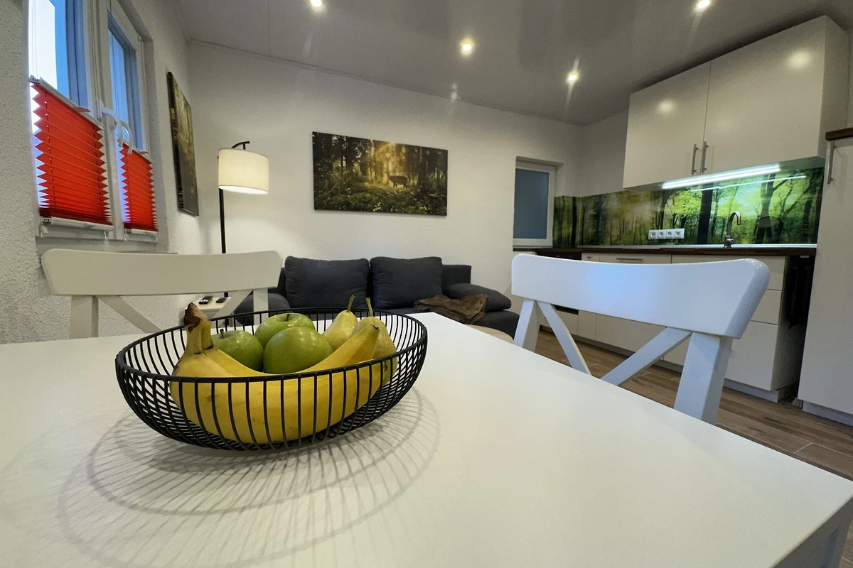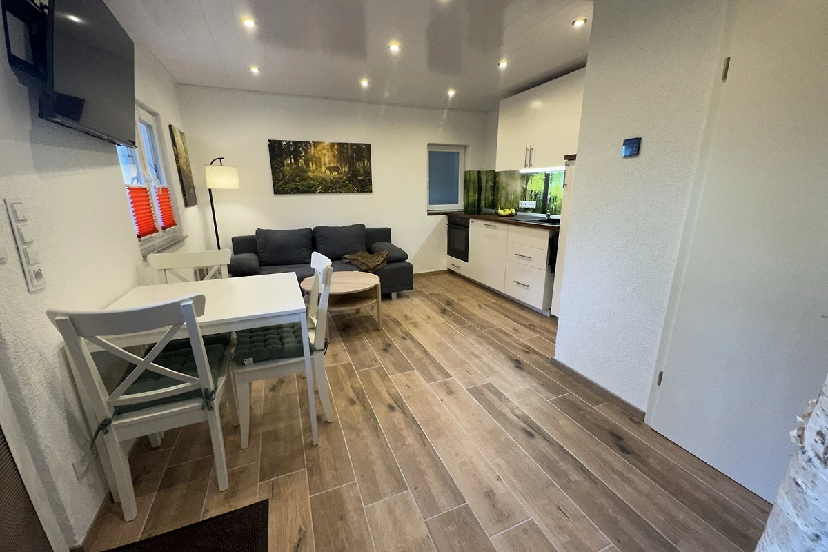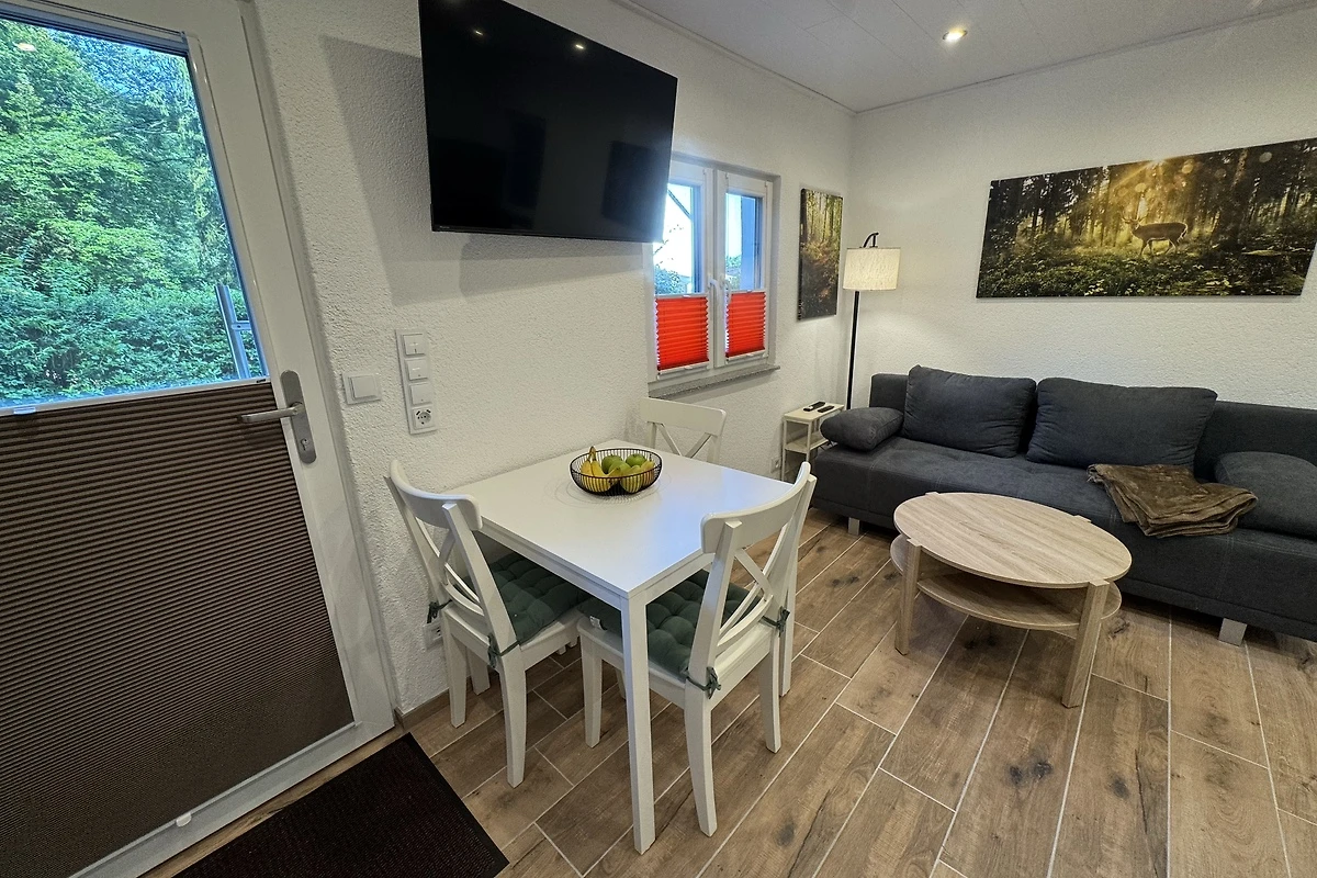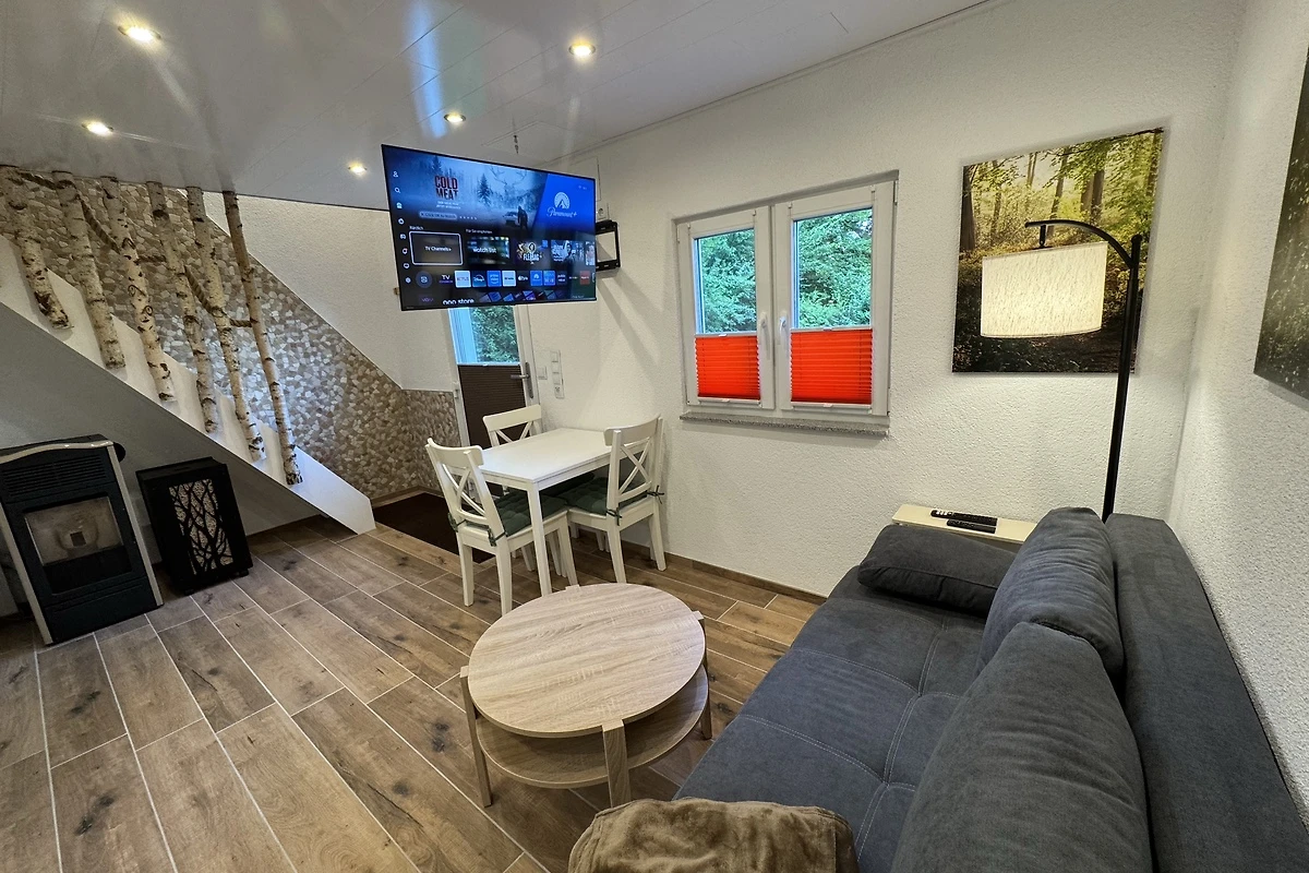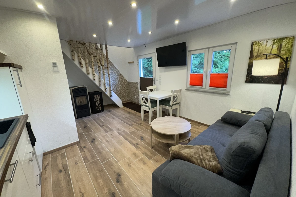 Willkommen im Ferienhaus „kleiner Siebenschläfer“ in Bad Sachsa im Harz! Dieses charmante Domizil bietet auf 35 m² Platz für bis zu drei Gäste und überzeugt durch seine durchdachte Ausstattung. Das Haus verfügt über ein separates Schlafzimmer, ein modernes Bäder und eignet sich besonders für Familien, Paare. Die offene Küche ist komplett eingerichtet, inklusive Geschirrspüler, Mikrowelle, Wasserkocher und Kaffeemaschine – ideal für entspannte Mahlzeiten. Im lichtdurchfluteten Wohnbereich sorgt ein Pelletofen für behagliche Abende, während Sie auf dem Sofa entspannen und den Flachbild-TV genießen. Für kleine Gäste stehen ein Kinderbett und ein Hochstuhl kostenfrei bereit.