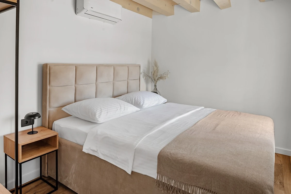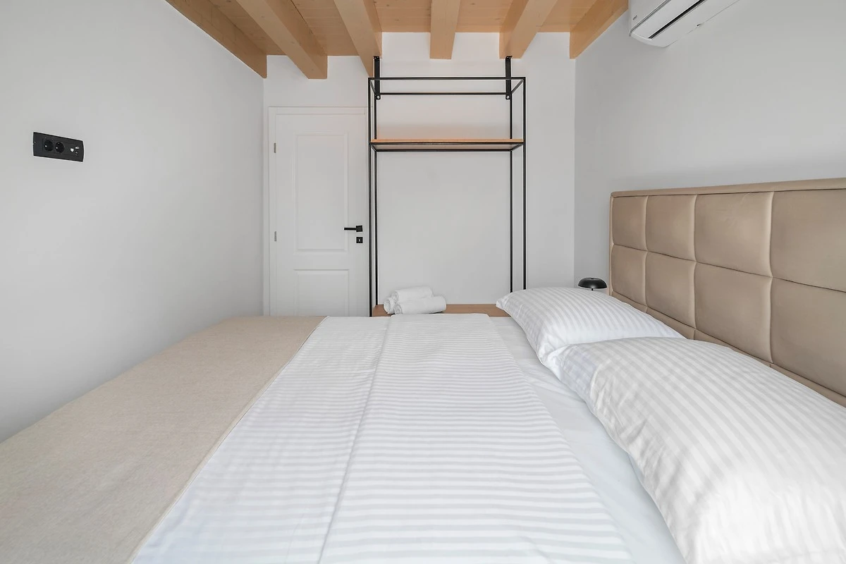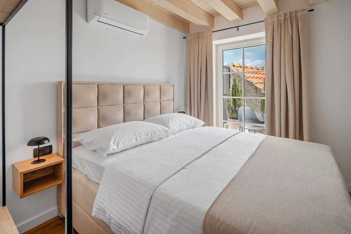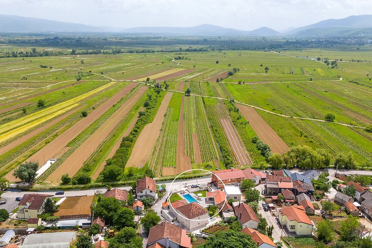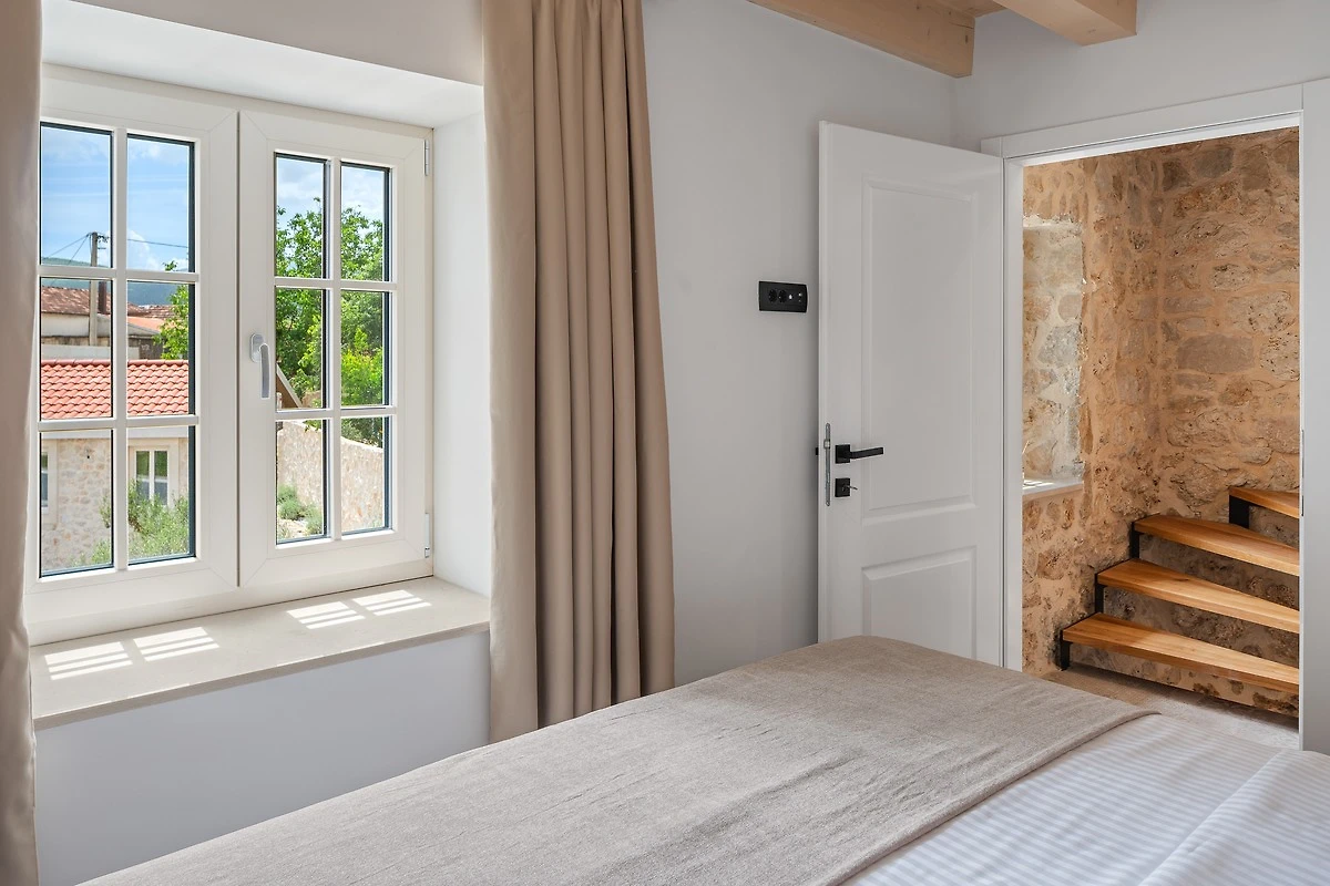 Erleben Sie den Charme der Ferien-Steinvilla Mara, einem reizvollen Rückzugsort auf einem 900 qm großen, umzäunten Privatgrundstück. Diese bezaubernde Unterkunft ist in zwei Einheiten unterteilt, die Ihnen exklusiv zur Verfügung stehen, und bietet insgesamt 190 qm voll klimatisierten Innenraum. Das unberührte, einladende Viertel des Dorfes Zmijavci (im Hinterland von Makarska) lädt Sie ein, in die entspannte Lebensweise hier einzutauchen, mit spektakulären Ausblicken auf das Imotski-Tal. Die natürlich entstandenen Dolinenseen in der Stadt Imotski, Roter See und Blauer See, sind nur 7 km von der Villa entfernt und ein Besuch wird sehr empfohlen. *Das Haupthaus empfängt Sie mit einer gemütlichen Küche, einem großzügigen Wohnzimmer, das perfekt zur Entspannung ist, sowie einer praktischen Toilette, einer Waschmaschine und einem Trockner im Erdgeschoss. Im Obergeschoss lädt Schlafzimmer Nr. 1 (10 qm) mit einem bequemen Queen-Size-Bett und Zugang zu einer charmanten Terrasse mit Poolblick ein, während Schlafzimmer Nr. 2 (11 qm) ein luxuriöses King-Size-Bett bietet; beide teilen sich ein stilvolles Familienbadezimmer mit einer erfrischenden Dusche. Gehen Sie hinauf zum Dachboden, um Schlafzimmer Nr. (26qm), ein ruhiges Refugium mit eigenem Bad und einer belebenden Dusche. *Das zweite Haus bietet ein weiteres Wohnzimmer, TV, PlayStation5 und eine voll ausgestattete Sommerküche mit einer direkten Schiebetür zum Essbereich im Freien und zum Pool. Es gibt ein Schlafzimmer NR4 (22qm) mit einem Kingsize-Bett und einer Leseecke mit Sofa, ein Familienbadezimmer mit Dusche.