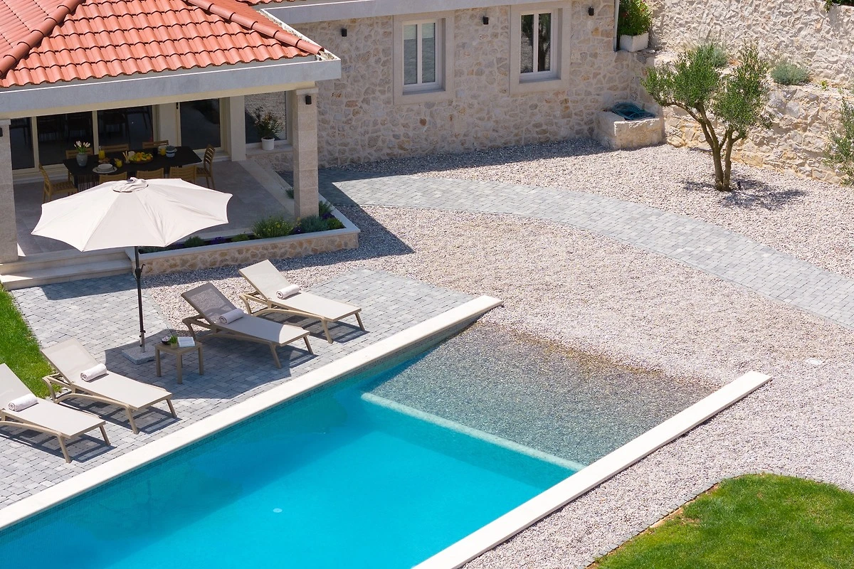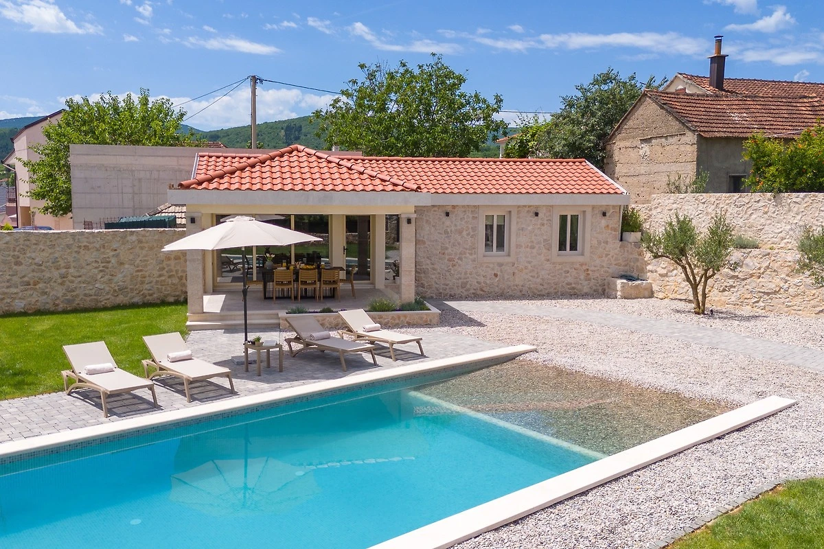 Stone House Mara mit 4 Schlafzimmern, 3 Badezimmern, PS5, Tischtennis, Sommerküche, 51 qm privater Pool