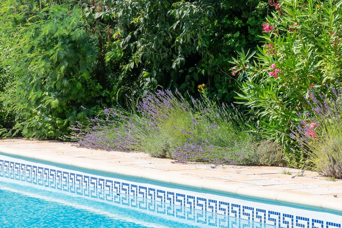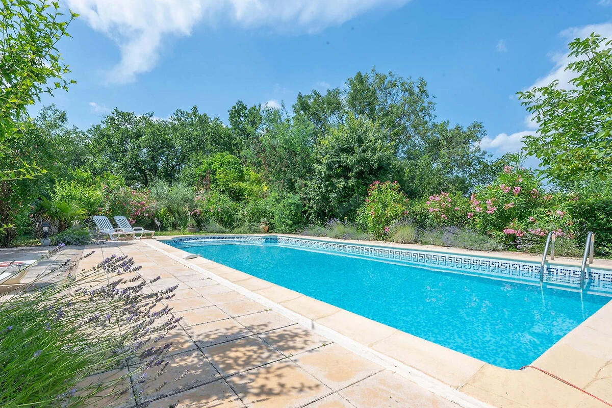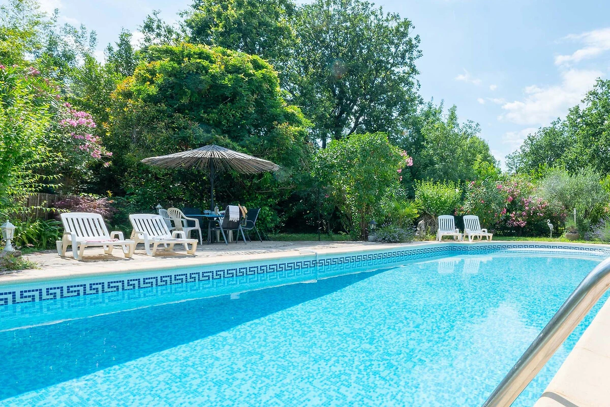 Privatschwimmbad von 10 x 5 m, vollständig eingezäunt und von Grün umgeben
