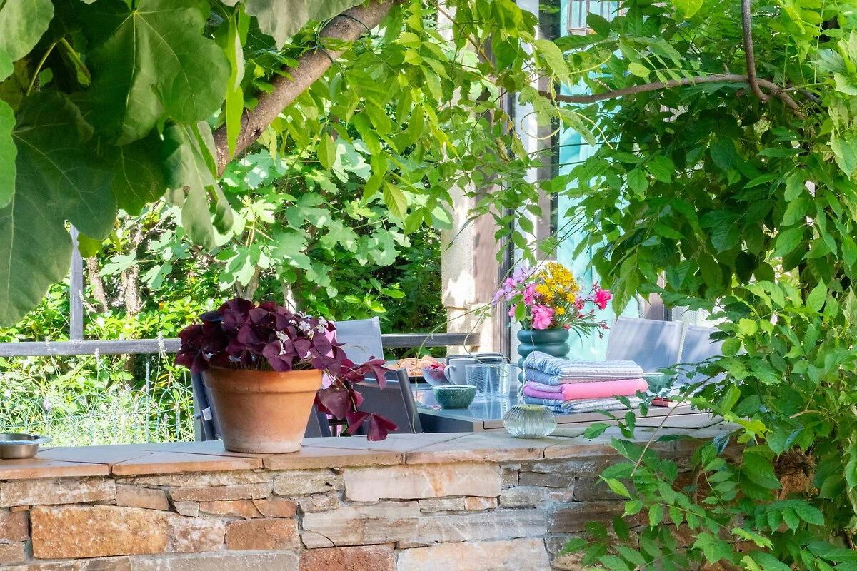 Üppiger Garten mit besonderen Bäumen, viel Privatsphäre und Vogelgesang
