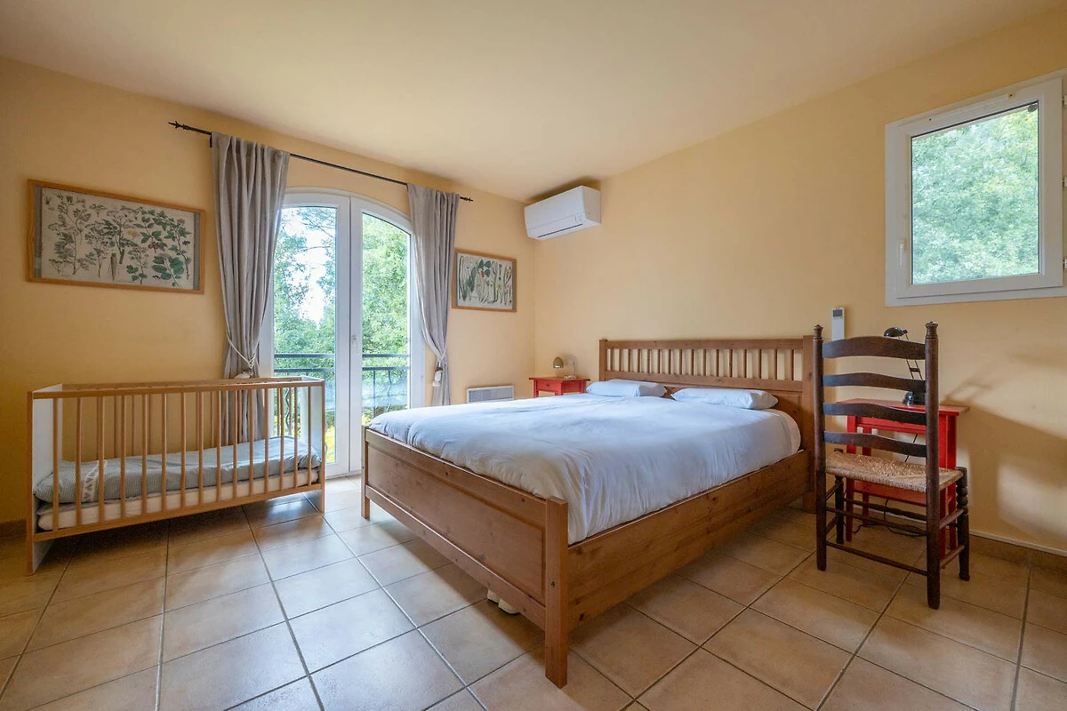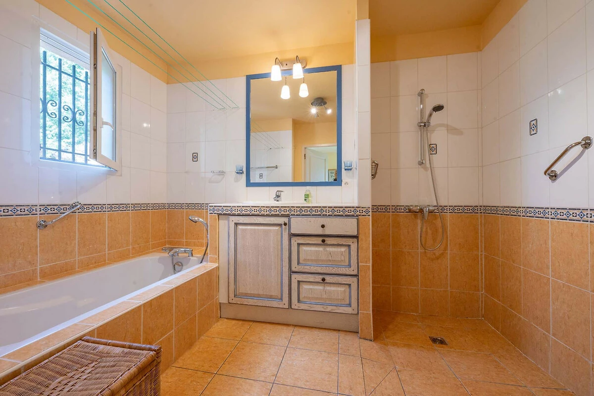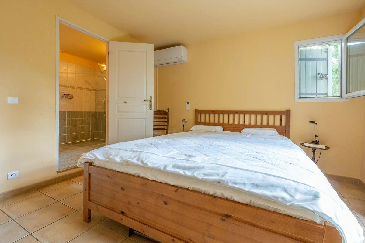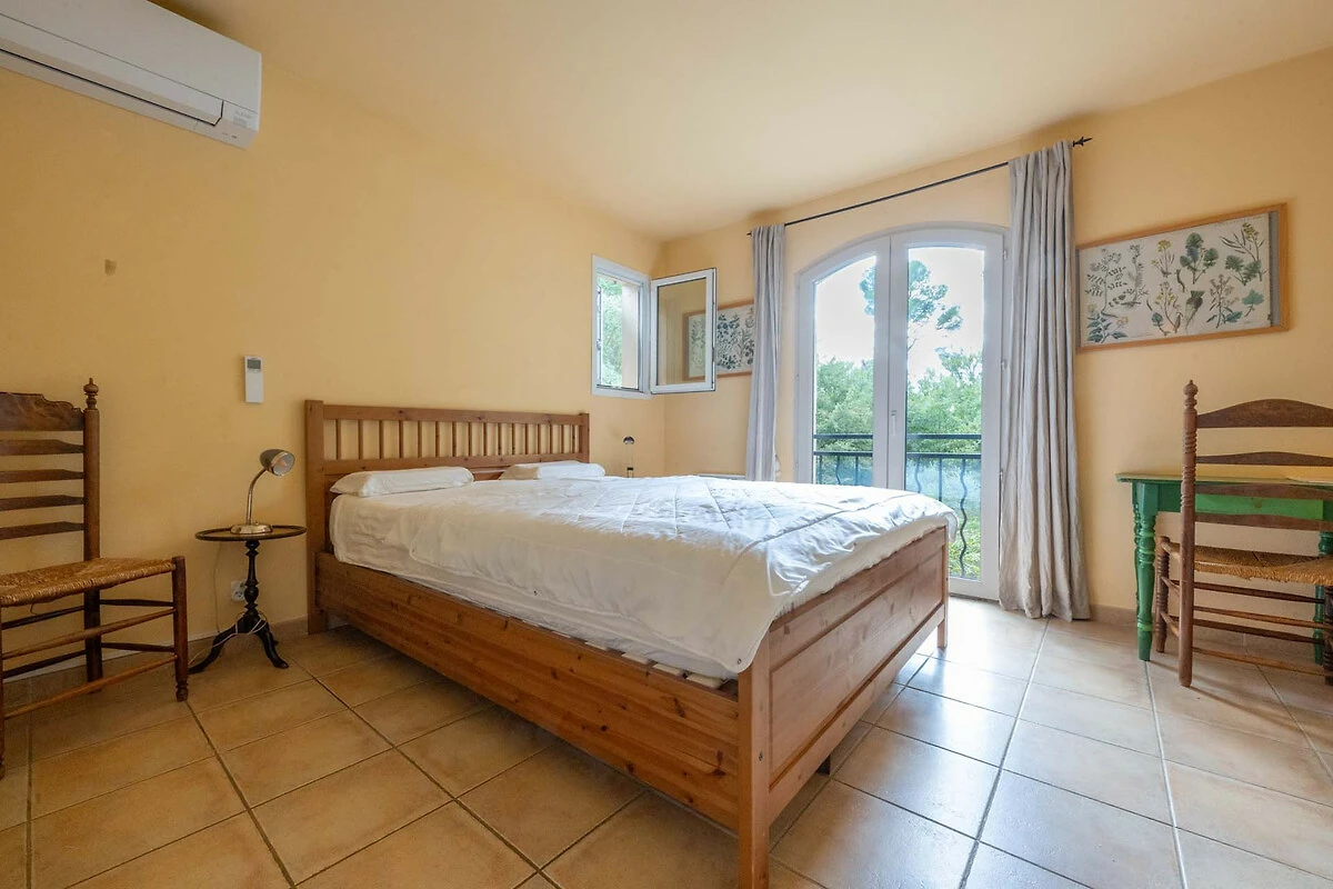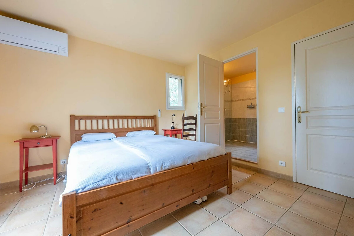 Die Villa verfügt über drei Zweipersonenschlafzimmer, jedes mit Klimaanlage und eigenem Badezimmer. Ein Schlafzimmer im Erdgeschoss ist rollstuhlgerecht und hat direkten Zugang zur Terrasse und zum Swimmingpool über einen asphaltierten Weg.