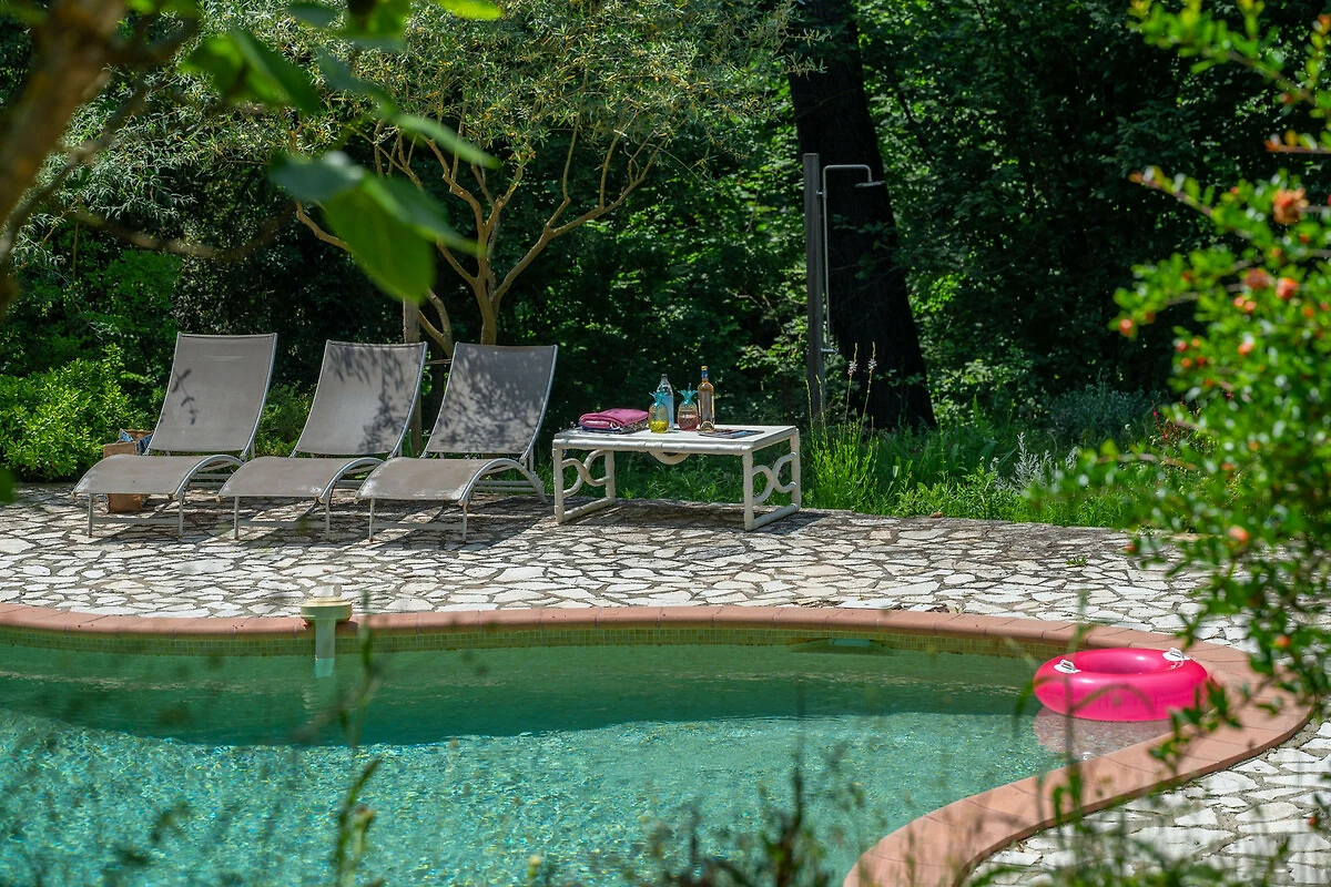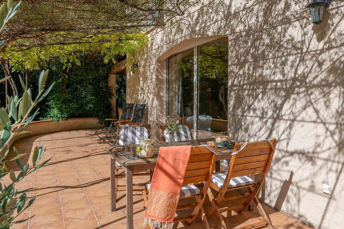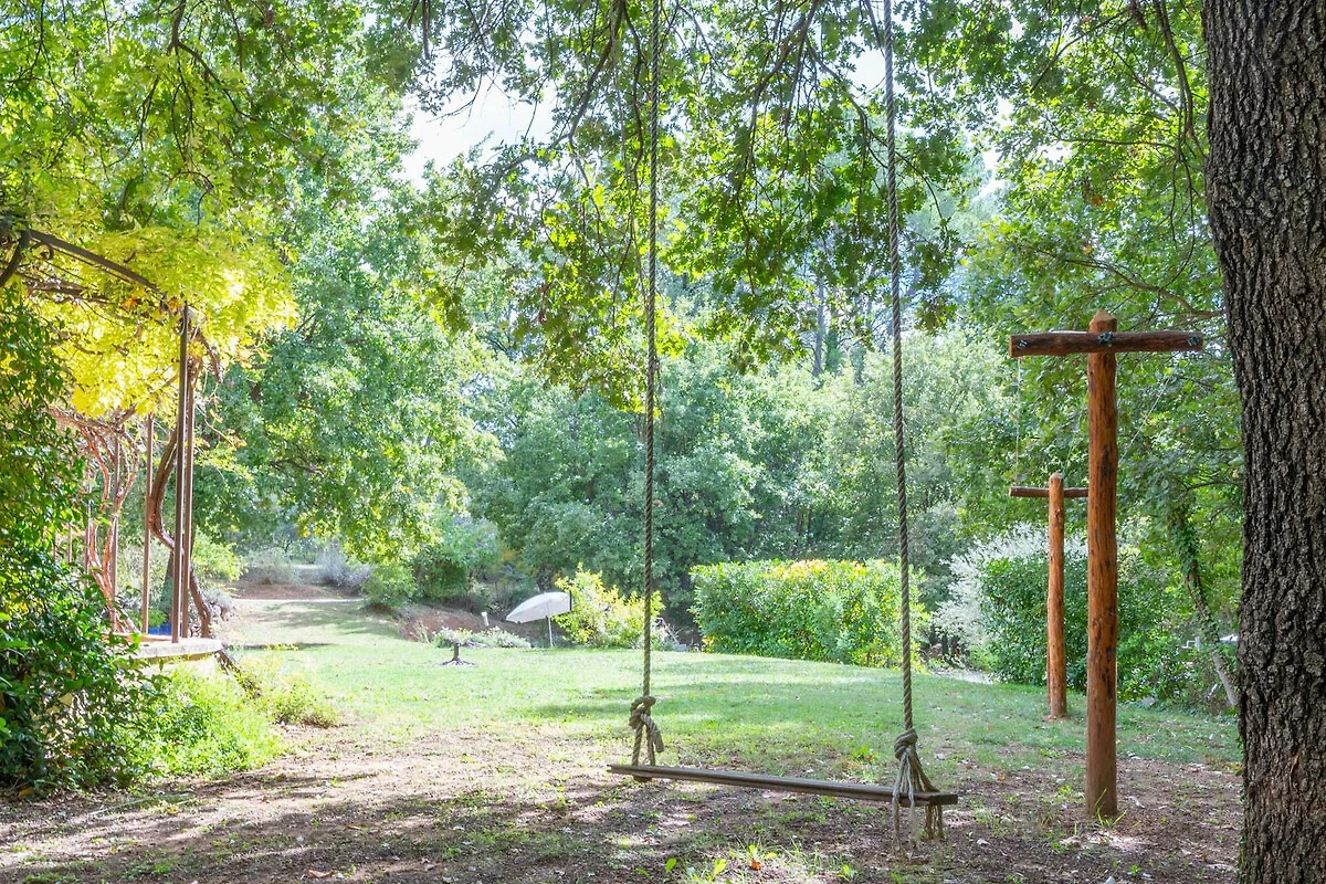 Die stimmungsvolle Terrasse der Villa, umgeben von Weinreben und Rosen, lädt zu langen Sommerabenden ein. Im schön angelegten, eingezäunten Garten befindet sich das private Schwimmbad (geöffnet von April bis Oktober) und für die Kinder gibt es reichlich Spielraum mit einer Schaukel, einem Kletterseil und einem Trampolin. Entspannung für Erwachsene bietet die mit Holz beheizte Sauna neben dem Schwimmbad. Ausserdem gibt es einen authentischen, mit Holz beheizten Pizzaofen auf der Terrasse, inklusive eines geräumigen Holzvorrats.