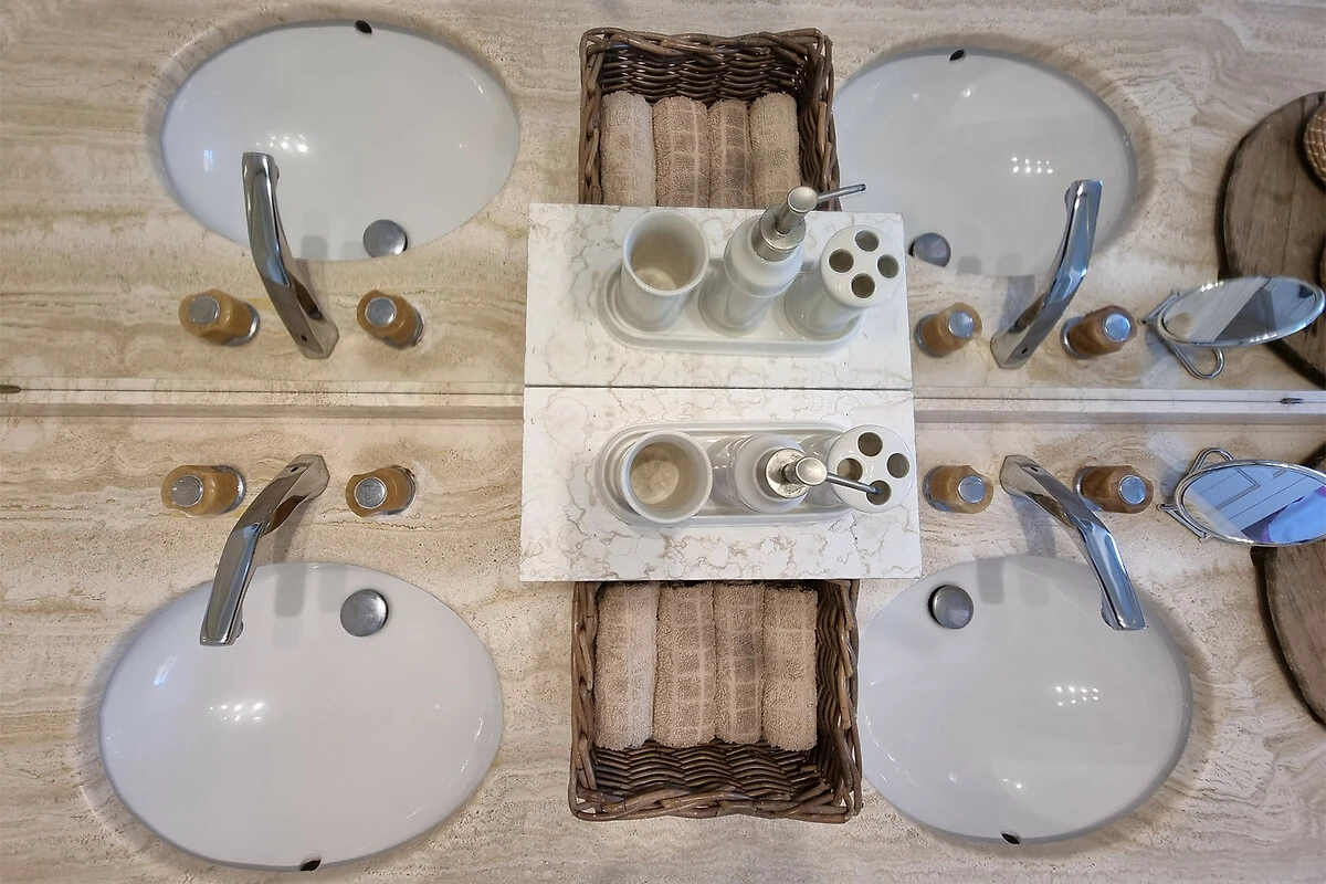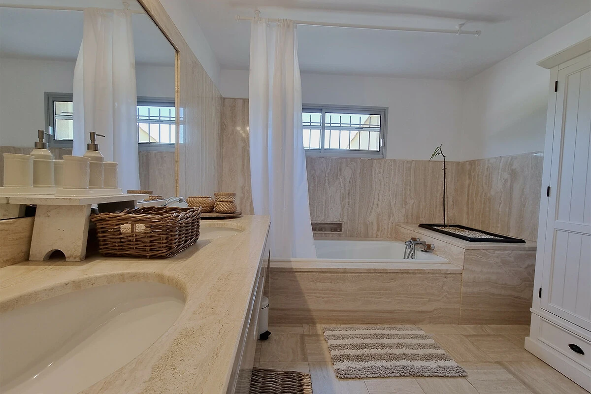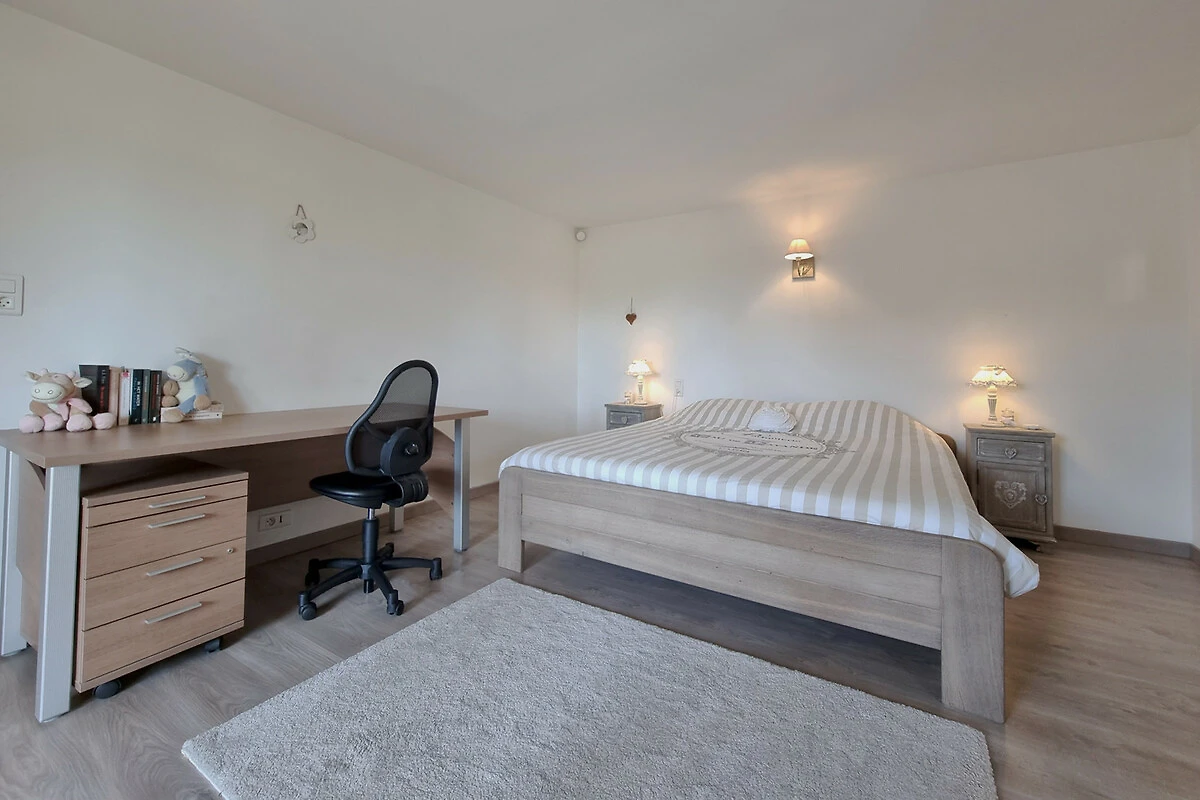 Obergeschoss: Eine luxuriöse Suite mit einem Bett von 180x200 cm, einem eigenen Badezimmer mit Walk-in-Dusche, Doppelwaschbecken und Toilette sowie einem intimen Balkon – perfekt für einen ruhigen Moment mit einer Tasse Kaffee oder einem Glas Wein.