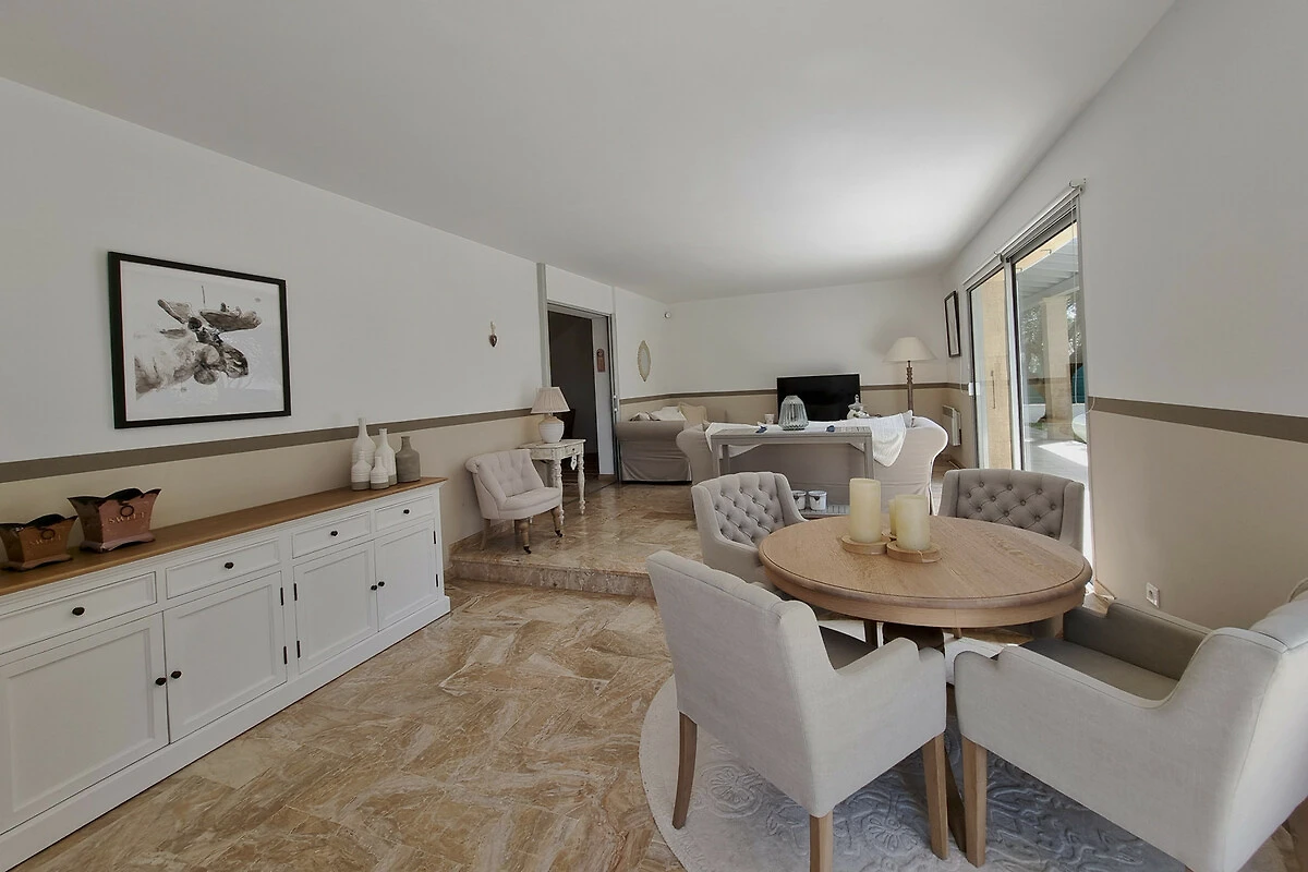 Die Villa ist mit viel Geschmack und Liebe eingerichtet und bietet alles, was Sie für einen entspannten Urlaub benötigen. Der geräumige und atmosphärische Salon hat zwei komfortable Sitzecken und öffnet sich zu einer Terrasse, von wo aus Sie die Aussicht geniessen können.